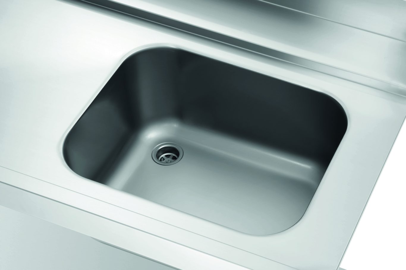 Система предварительной очистки шириной 1,2 м с мойкой предназначена для крепления с левой стороны на посудомоечной машине открытого типа Bartscher DS. В основании предусмотрено место для моечных корзин.