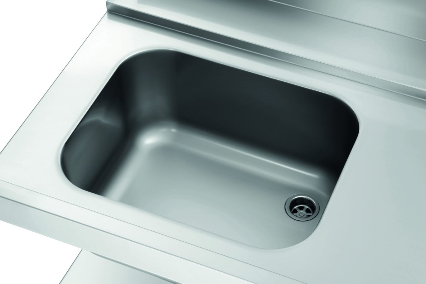 Система предварительной очистки шириной 1,2 м с мойкой предназначена для крепления с правой стороны на посудомоечной машине открытого типа Bartscher DS. В основании предусмотрено место для моечных корзин.