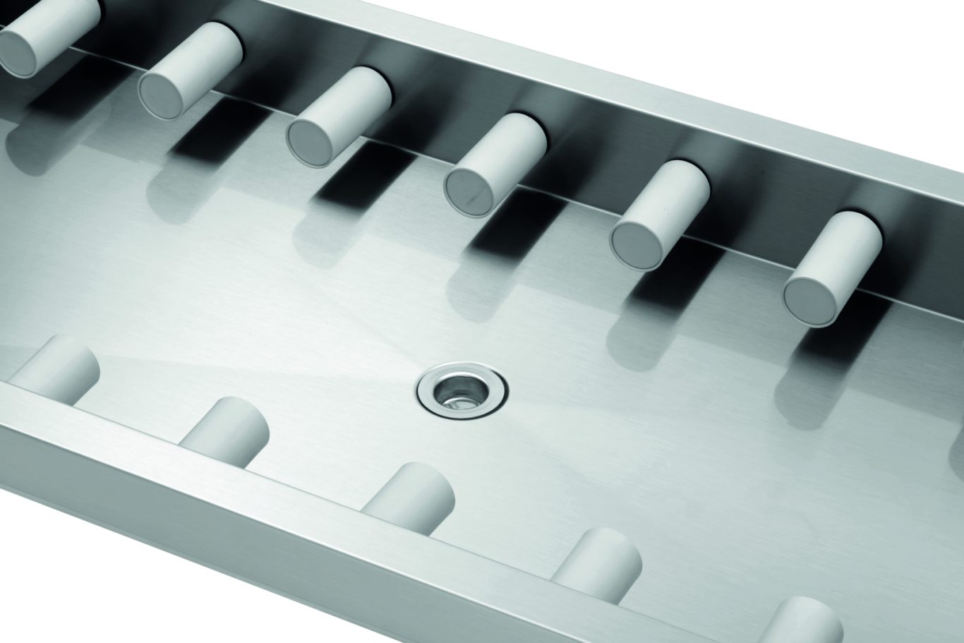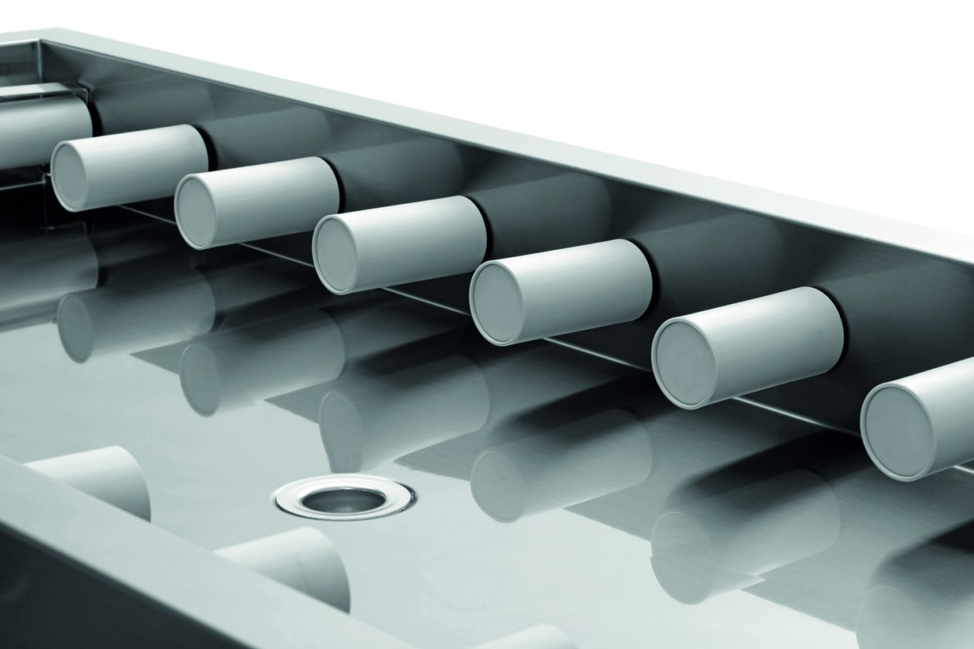 Стол дренажа с транспортными роликами — это идеальное дополнение к конвейерной посудомоечной машине KTS5000. Бесперебойная работа обеспечивается посредством 20 транспортных роликов. Благодаря встроенному датчику конвейер KTS500 автоматически останавливается, если стол дренажа полон.