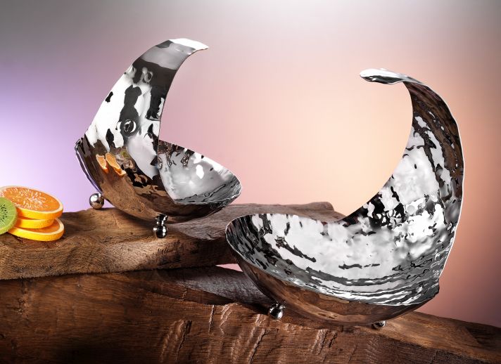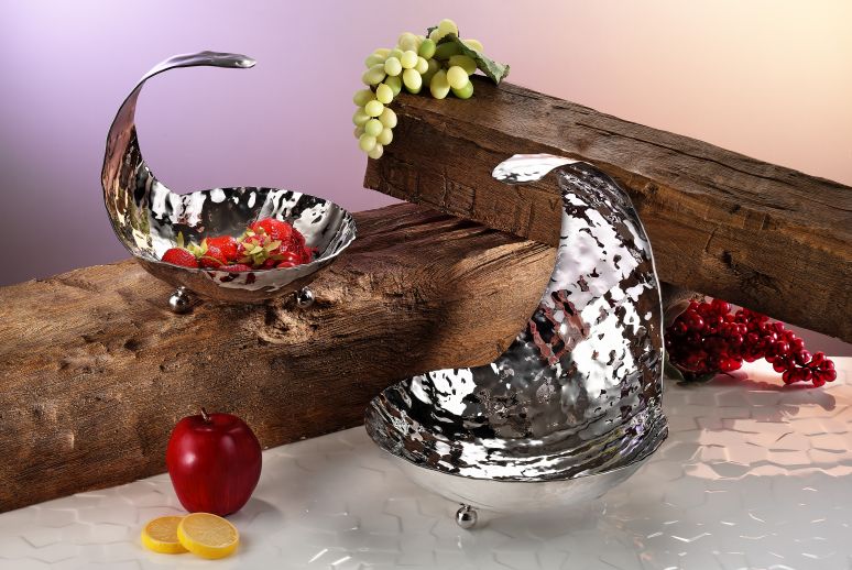 Чаша круглая на ножках с хвостом BERA, эффект молотка, нерж ст 18/10, d-26см
