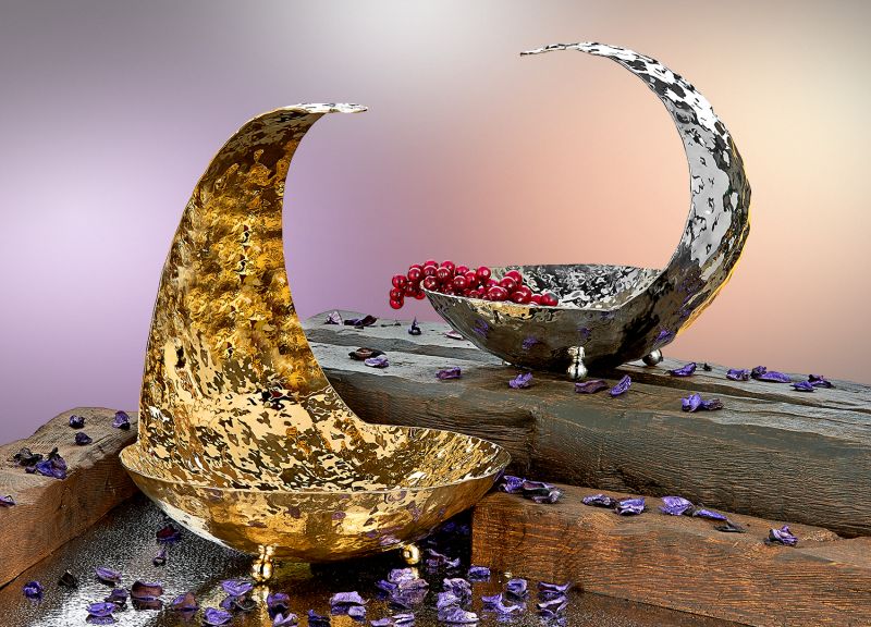 Чаша круглая на ножках с хвостом BERA, эффект молотка, нерж ст 18/10, d-32см