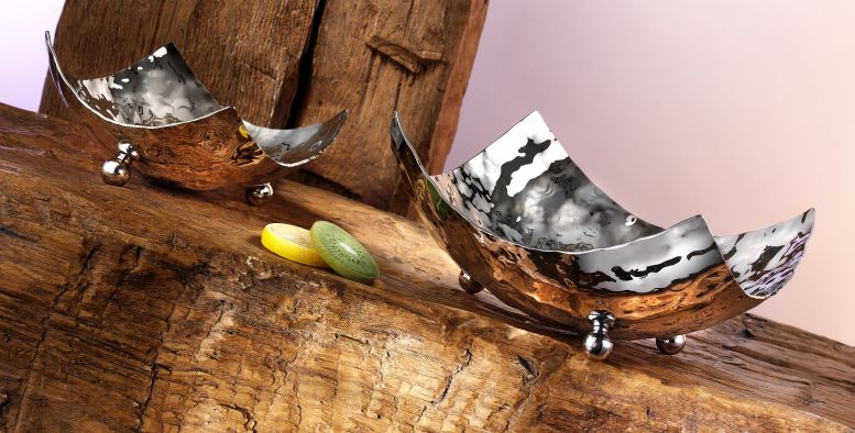 Чаша квадратная на ножках BERA, эффект молотка, нерж ст 18/10, 14x14см, h-5.5см