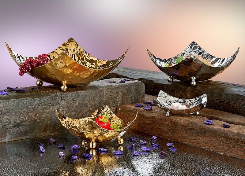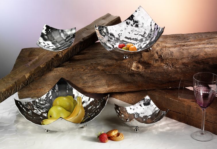 Чаша квадратная на ножках BERA, эффект молотка, нерж ст 18/10, 18x18см, h-9см
