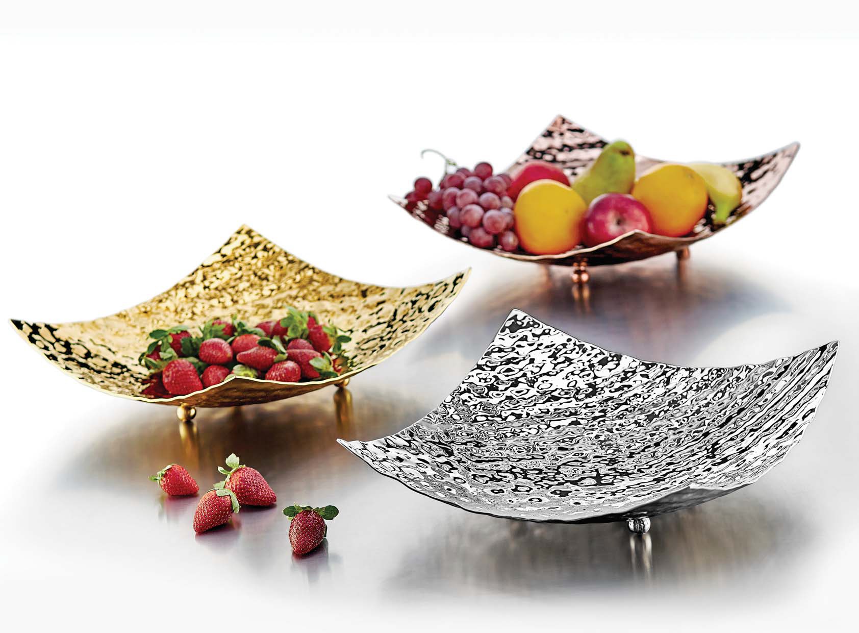 Чаша квадратная на ножках BERA, эффект молотка, нерж ст 18/10, 28.5x28.5см, h-12см