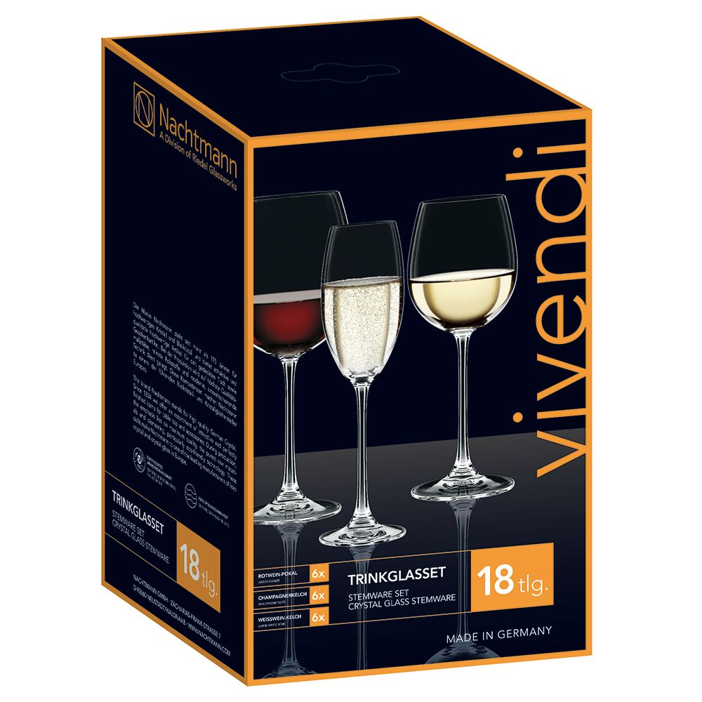 Набор бокалов 18 предметов ( 6 бокалов для красного вина 727 мл. + 6 бокалов для шампанского 272 мл. + 6 бокалов для белого вина 387 мл), хрусталь