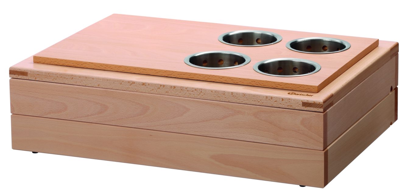 С модульным комплектом в благородном дизайне под дерево любой буфет будет выглядеть упорядоченно и аккуратно. Будь то завтрак, обед или ужин, в 4 подставки можно загрузить различные столовые приборы, а затем с легкостью заменять или дополнять их. Практичная подставка предлагает место для, например, салфеток.