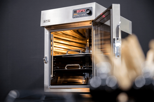 Мобильное настольное устройство с мощным конвекционным нагревом с цифровым управлением для различных функций, от щадящего до мощного - с выбираемыми программами для поддержания холода и тепла, регенерации, приготовления, тушения и запекания продуктов в системе GN. С дополнительным индивидуально регулируемым временем, увлажнением и установкой температуры в камере или внутри продукта. Благодаря специальному изоляционному стеклу, из которого открывается вид на освещенный интерьер, он выглядит привлекательно и функционально.