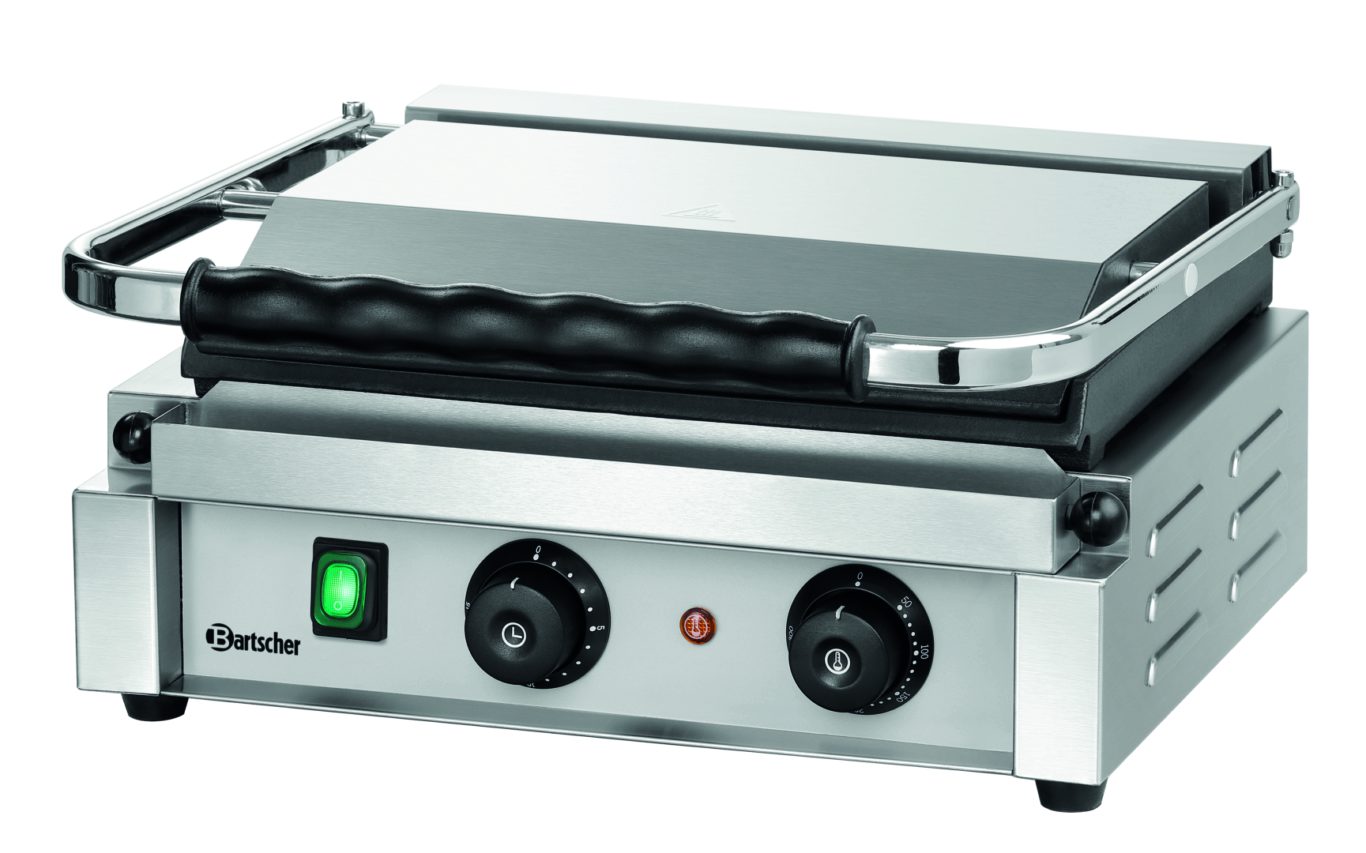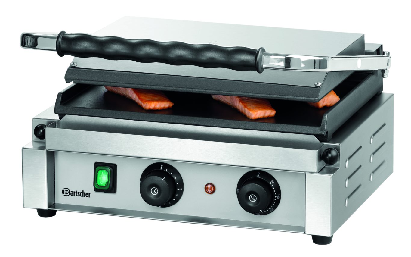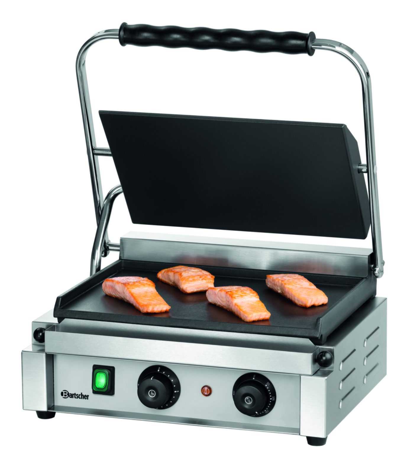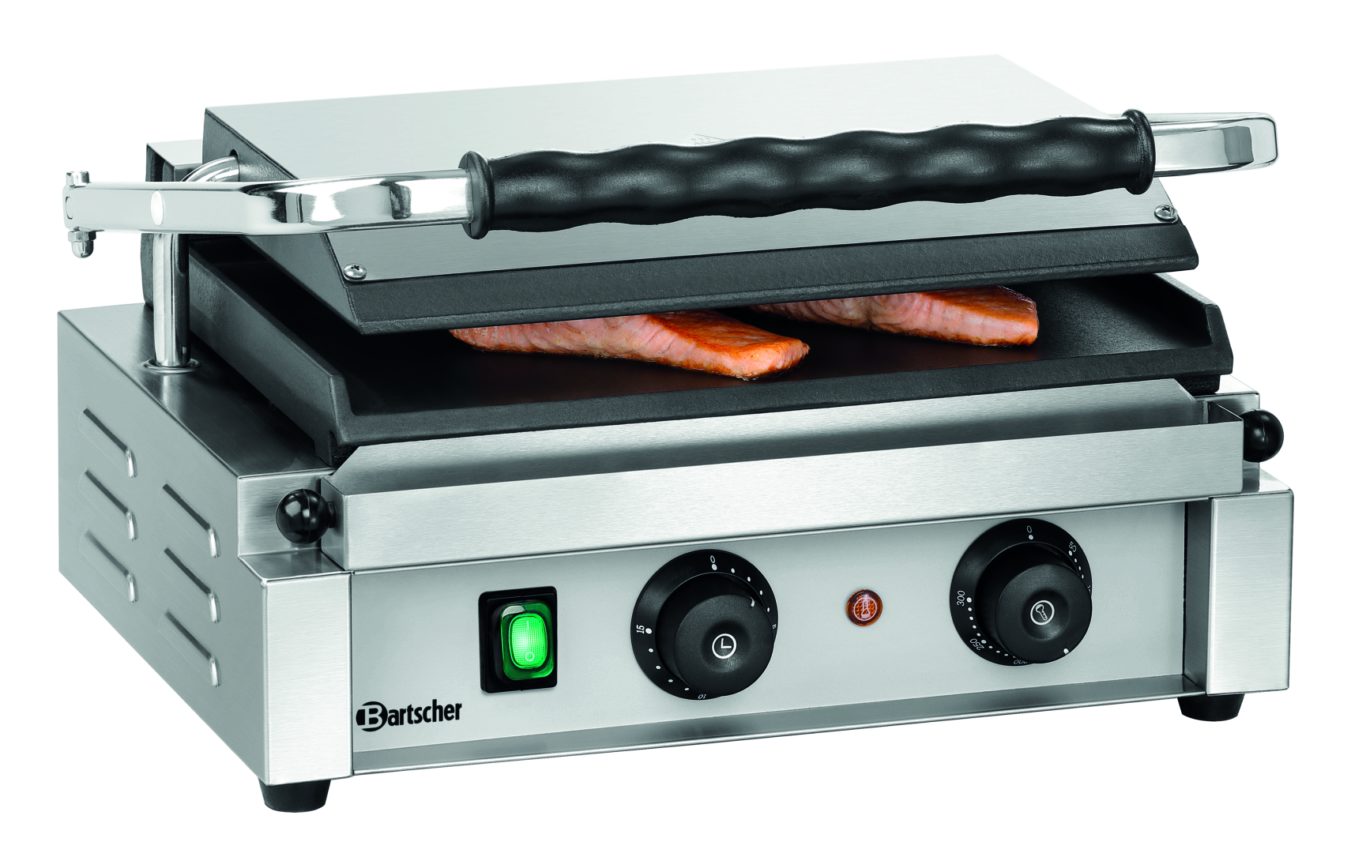 Мощный контактный гриль с большой поверхностью гриля и встроенным таймером — прочная конструкция с пластинами гриля из чугуна обеспечивает хорошую и чистую обработку пищи.