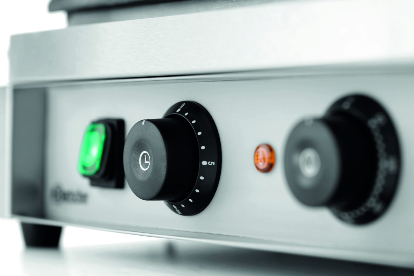 Прощай, пригоревшая еда — оптимизированный контактный гриль серии Panini-T наряду с известной прочной и надежной конструкцией оснащен таймером и встроенным звуковым сигналом.