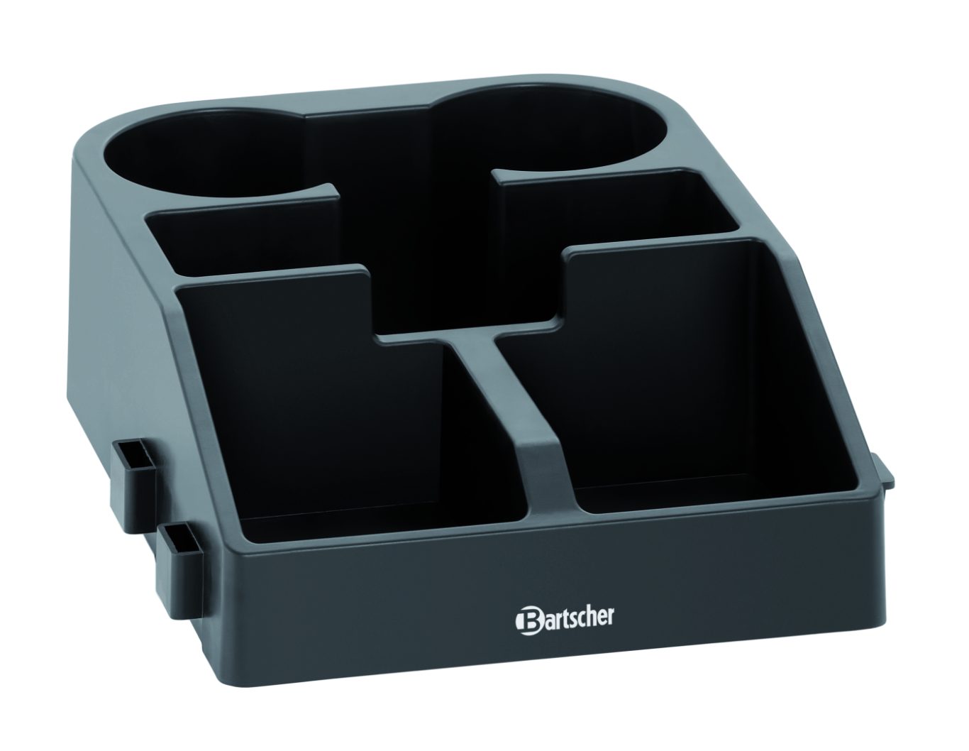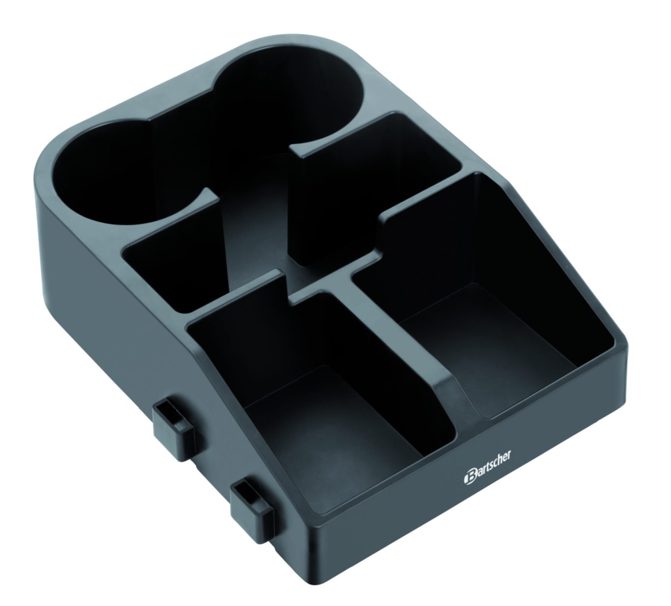 Свойства: 5 ящиков для хранения для бокалов, ложек/ мешалок, молока и сахара ,Модульная система с креплением сбоку ,Соединяется в ряд с чашей для сбора капель Z50-150 ,Соединяется в ряд с чашей для сбора капель Z50-170