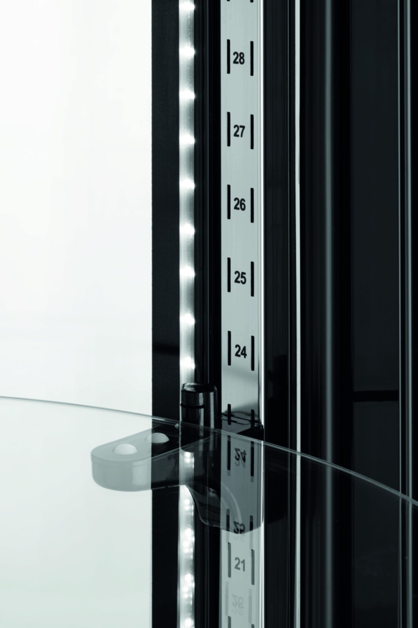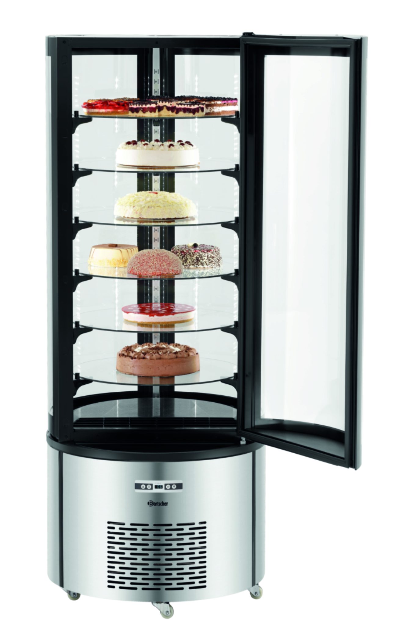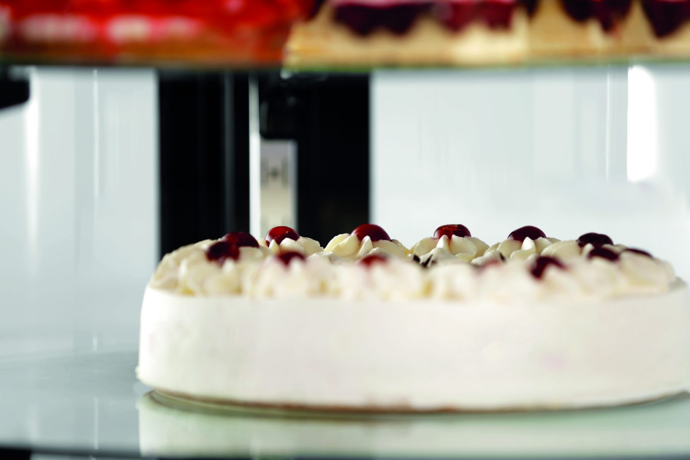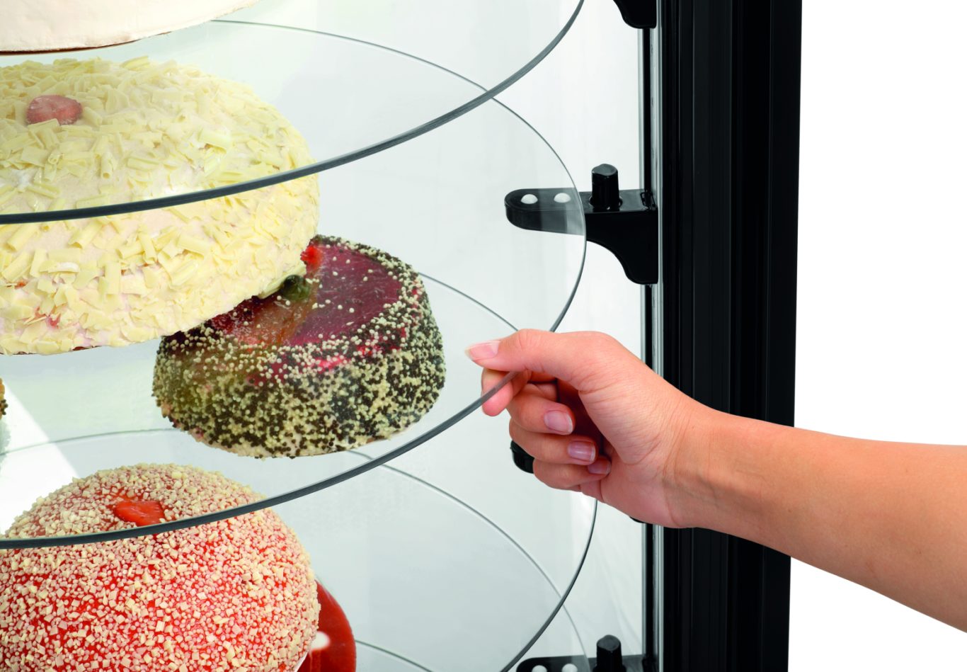 Имея диаметр 530 мм, 6 прочных стеклянных панелей толщиной 5 мм обеспечивают особенно много места для наглядной презентации тортов, пирогов или закусок.
