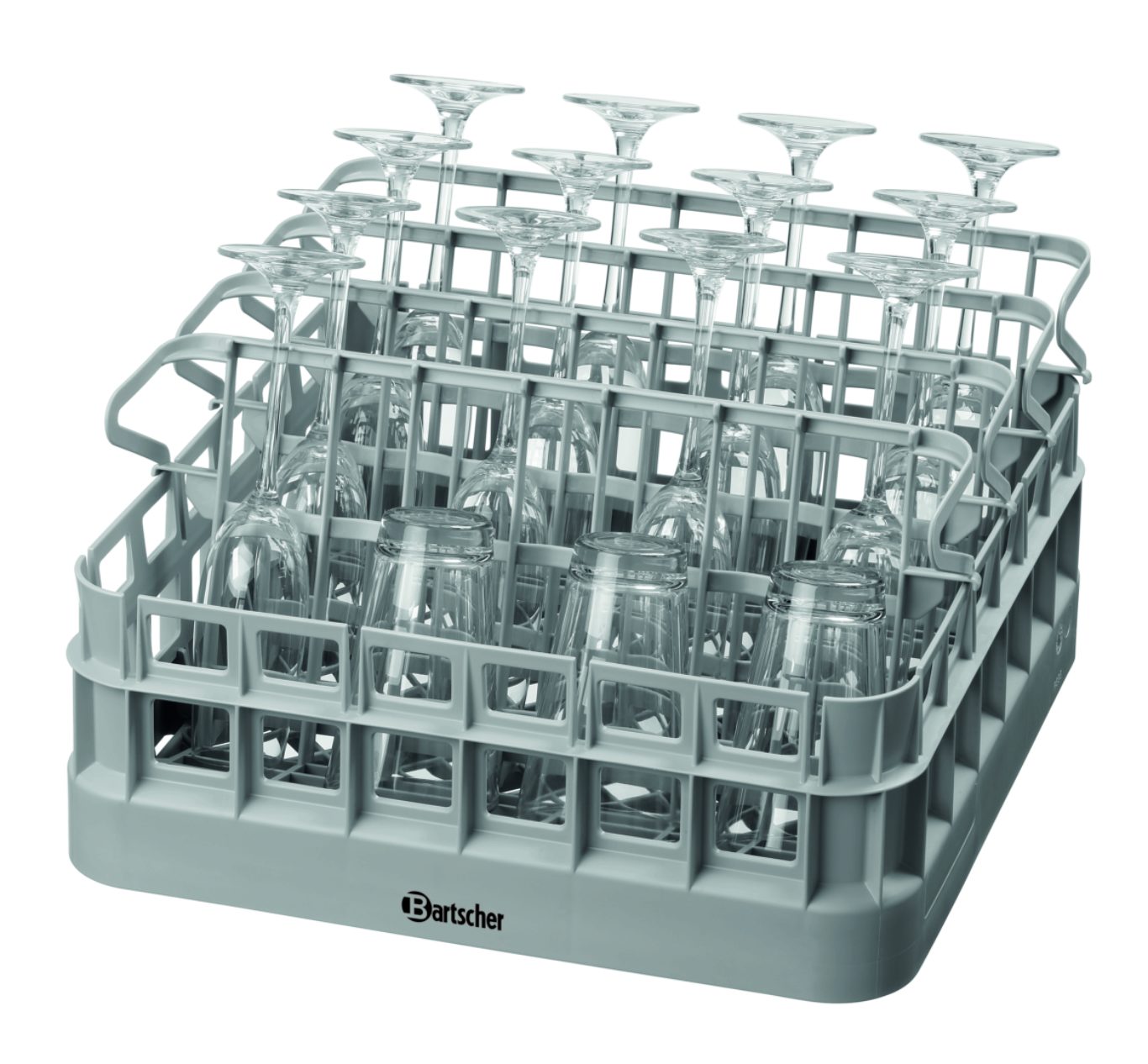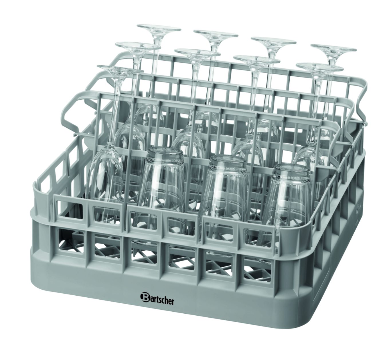Комплект моечной корзины, состоящий из: 2 универсальные корзины ,4 вставки для стаканов ,1 вставка для тарелок ,1 стакан для столовых приборов