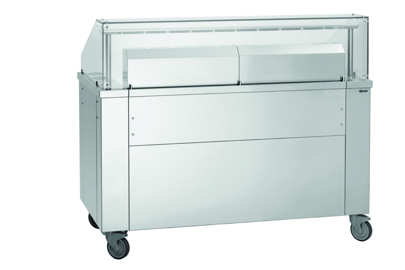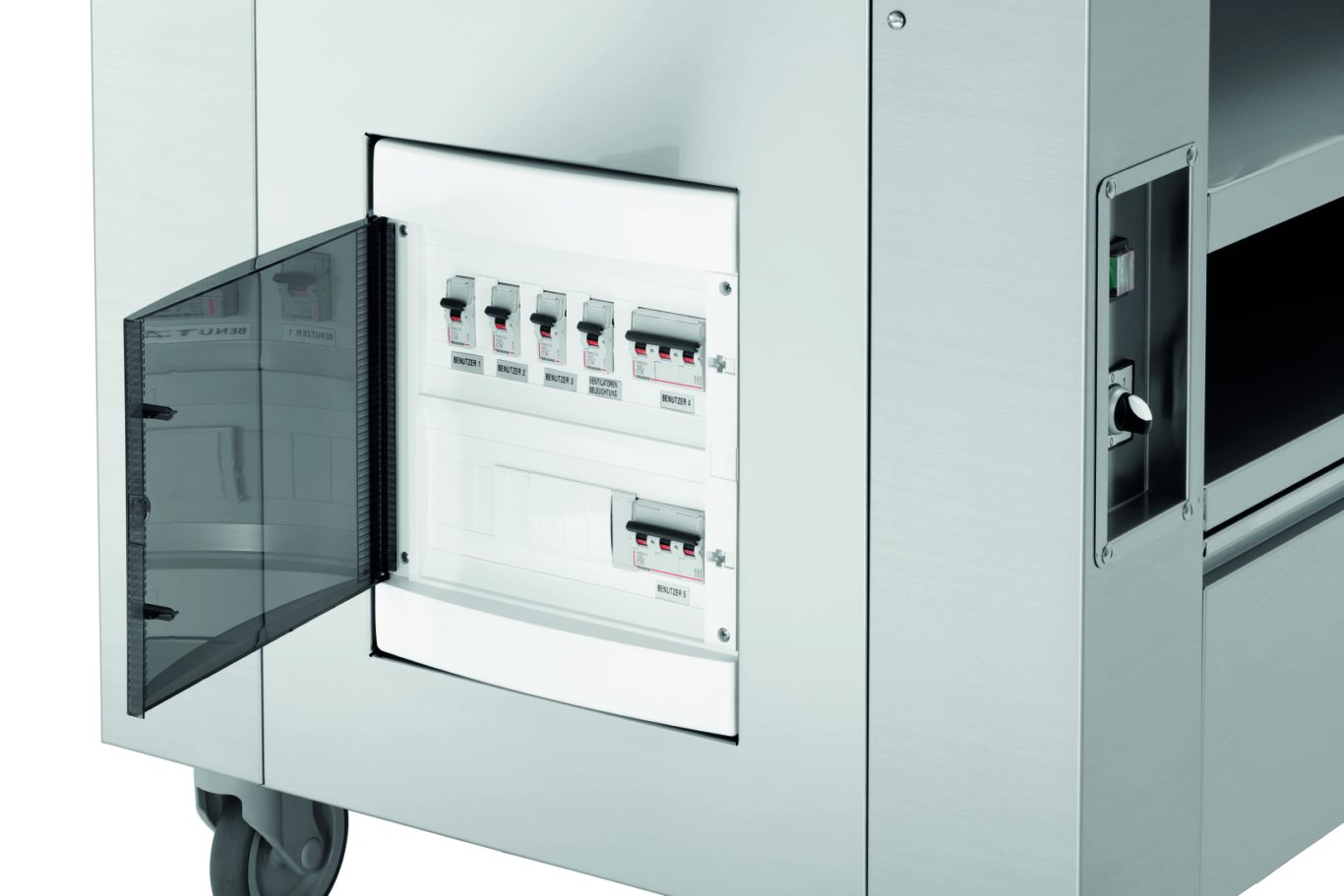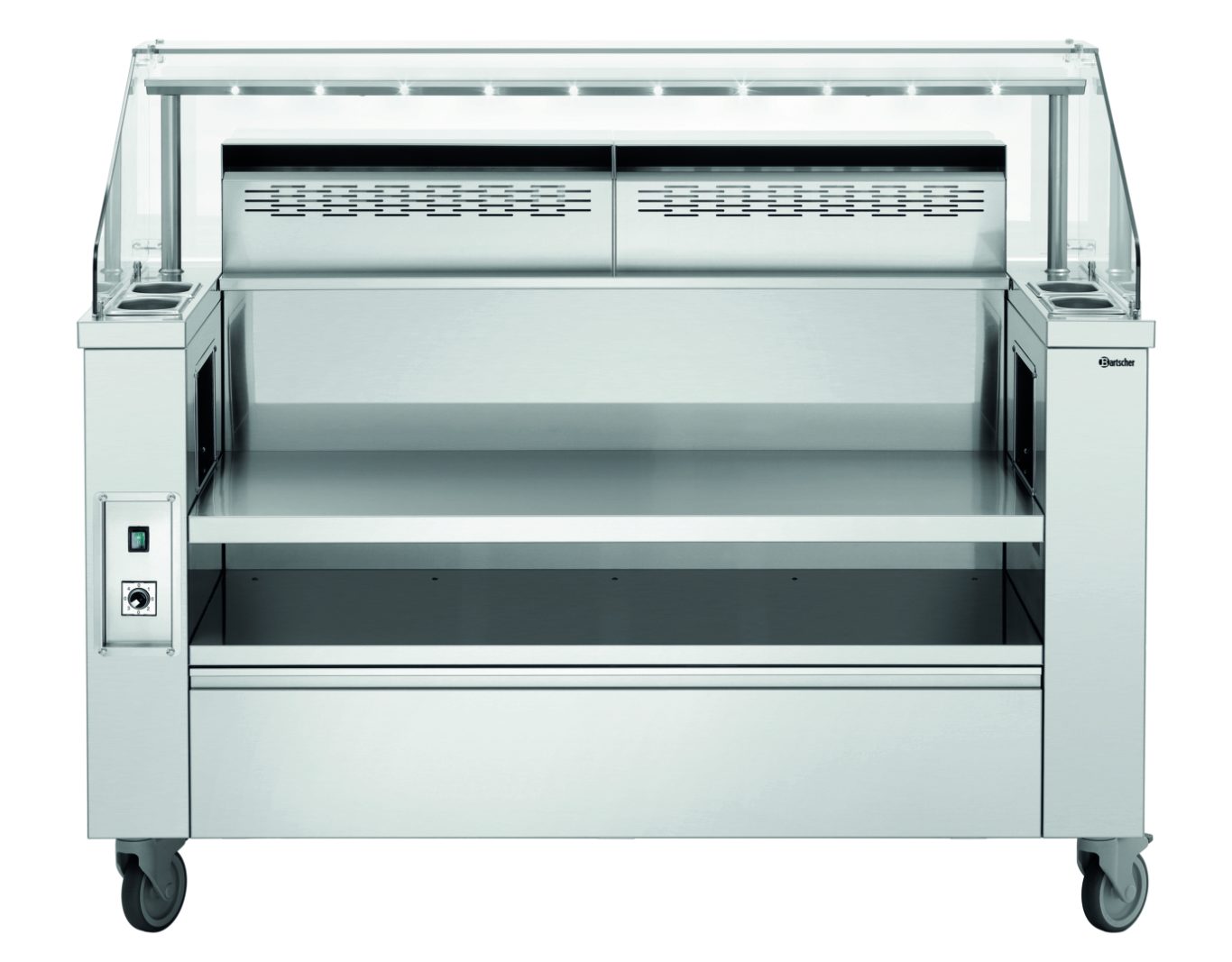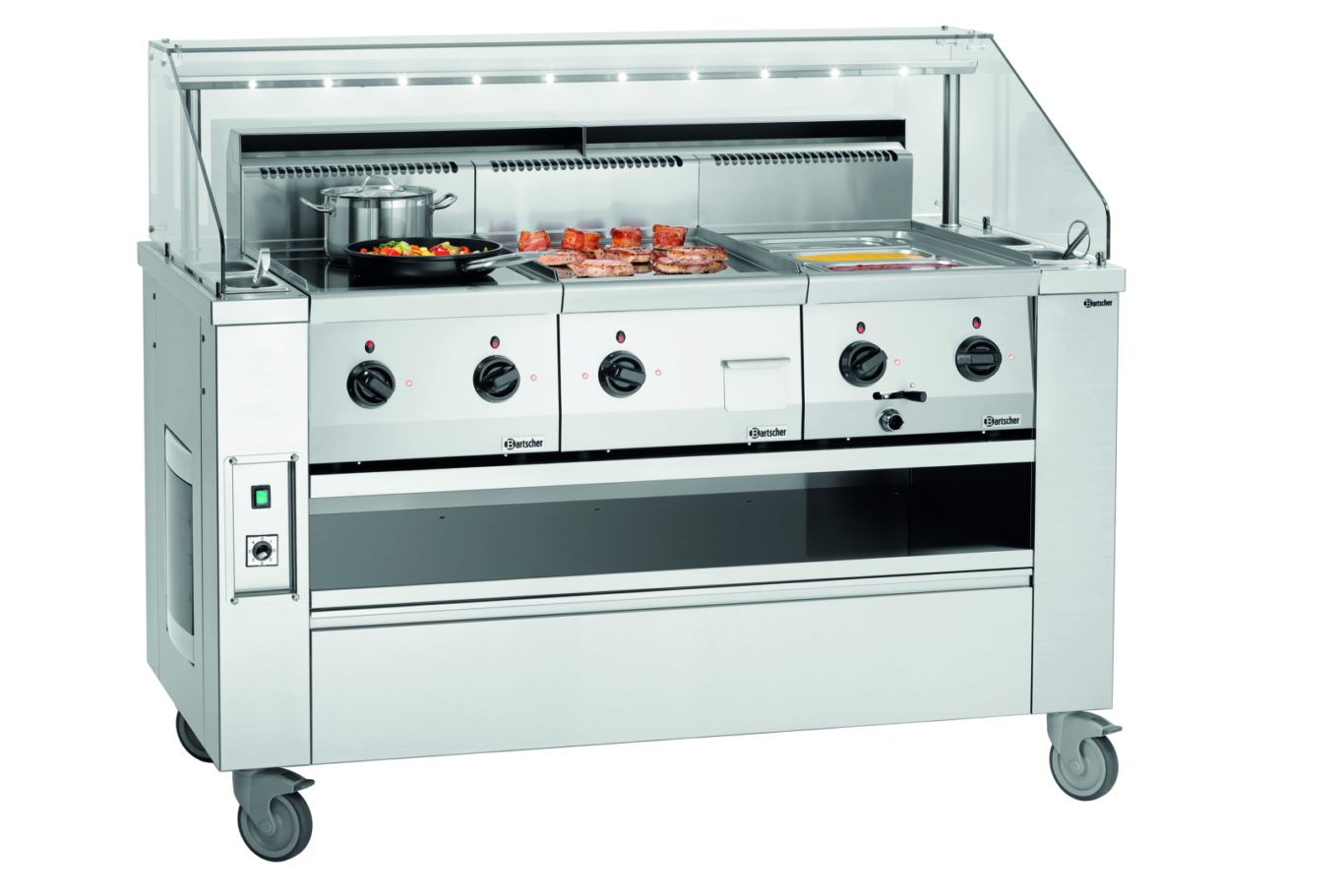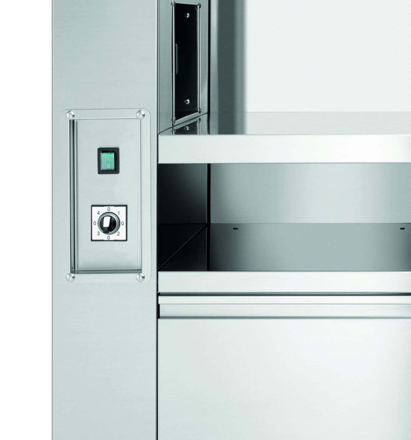 Оснащено с: Ящик для хранения под нишами настроек, размер: Ш 1 200 x Г 600 x В 150 мм ,4 емкости GN 1/9 GN, 100 мм глубина для масел, соусов, кухонных приборов ,Интегрированная вентиляция с лабиринтным фильтром