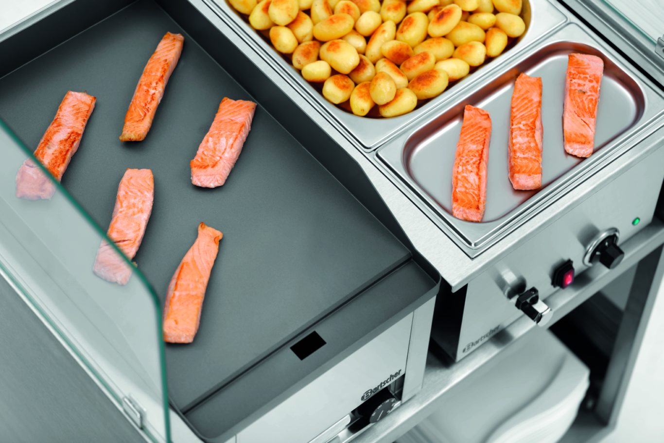 Вставная полка для Snackpoint 200 рассчитана на гриль GDO 320E-G и паровую баню формата 1/1 GN. Она позволяет готовить блюда и поддерживать их в идеально теплом состоянии до выдачи.