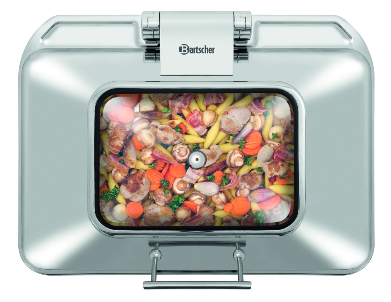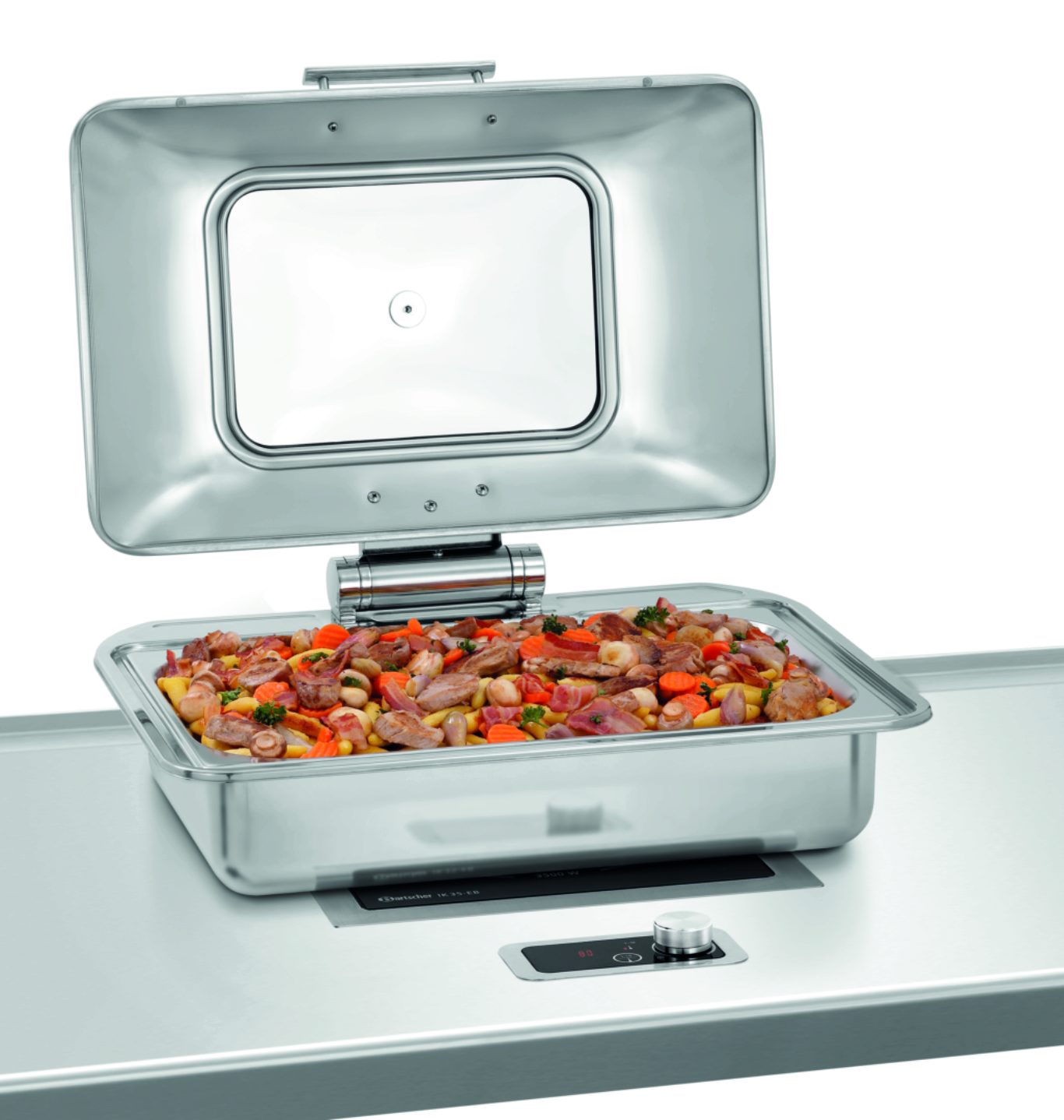 Характеристики: Регулирование температуры с помощью внешней варочной поверхности ,Подъемное устройство для емкости GN