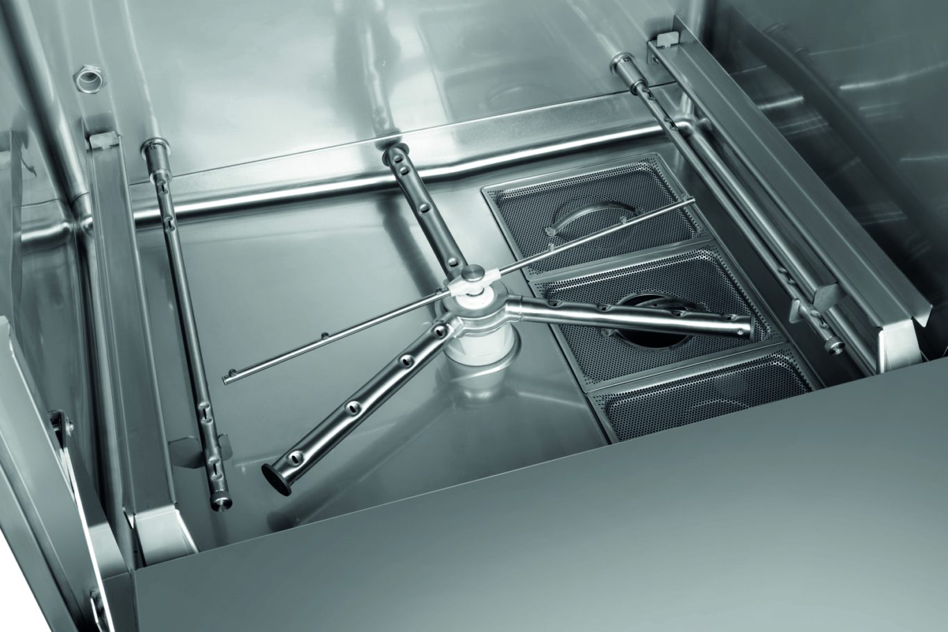 TS8500 оснащена корзиной для подносов и специальной решеткой для чистки громоздких предметов. Такие функции, как электронный термоостанов, система Plus и вертикальный экран насоса, обеспечивают наилучшие результаты мытья подносов, противней, досок для разделывания, гастрономических контейнеров, кастрюль или сковород.