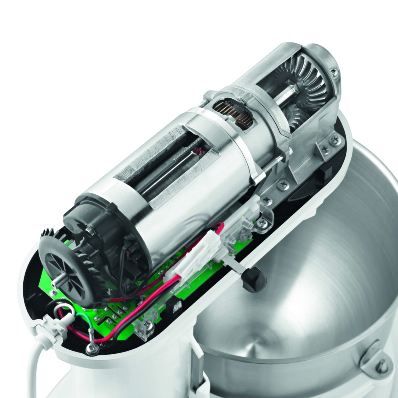 Безопасный, эффективный и мощный - Планетарный миксер для профессионального сектора: c редуктором, предохранительным выключателем, системой безопасности и очень большой дежой из нержавеющей стали.