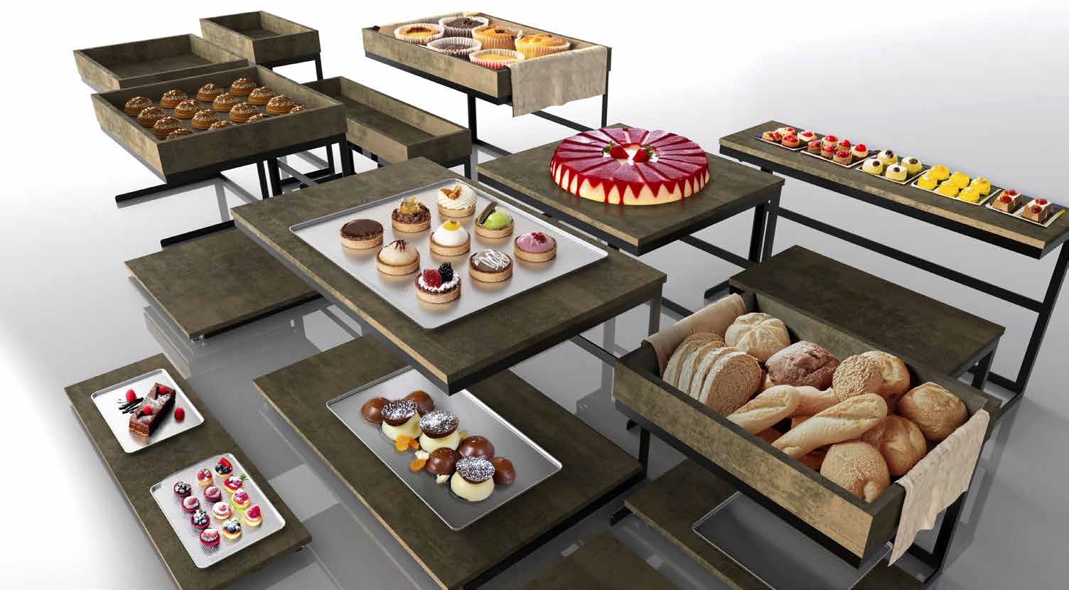 Стойка H-300 сталь черный лак с деревянной поверхностью под камень, GN 2/3 H-10 344x315x310мм