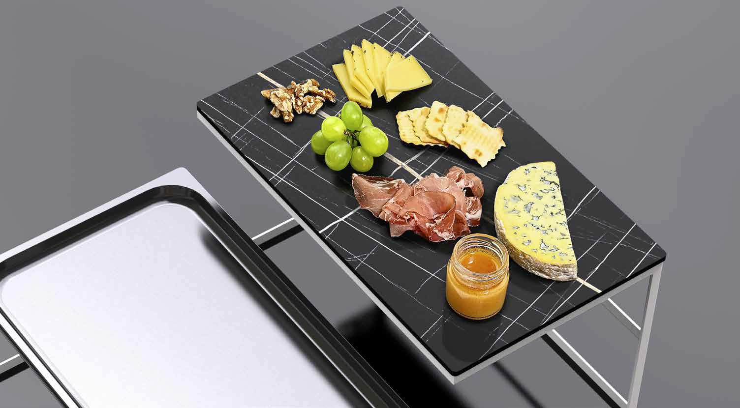 Стойка Minimal Line H-200 сталь белый лак c доской GN2/4 из смолы с мраморным эффектом 530x162x200мм