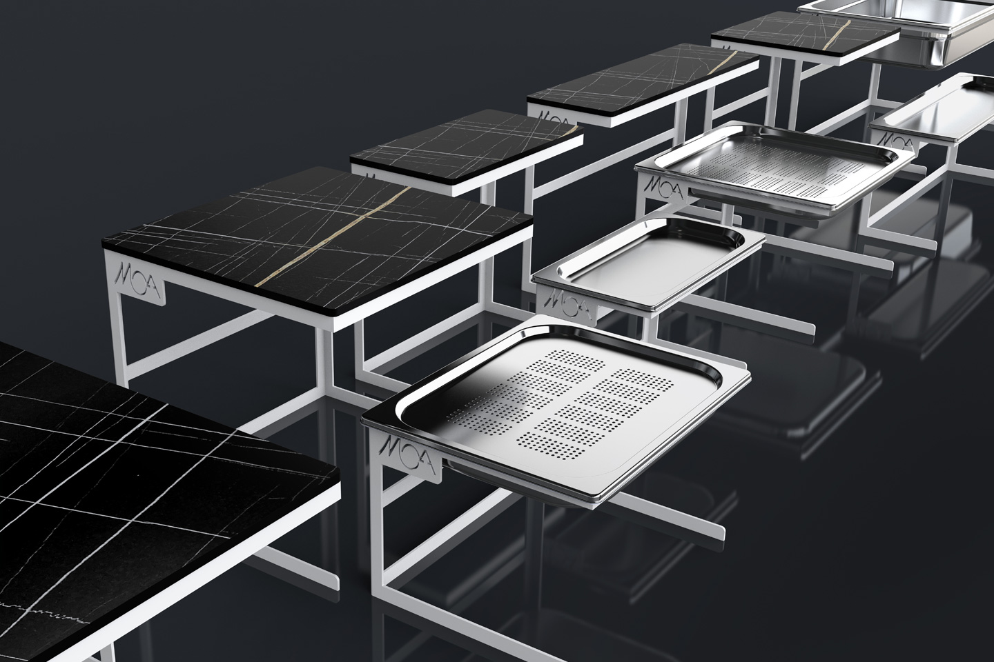 Стойка Minimal Line H-300 сталь черный лак с лотком GN2/1 h-20 650x530x300мм