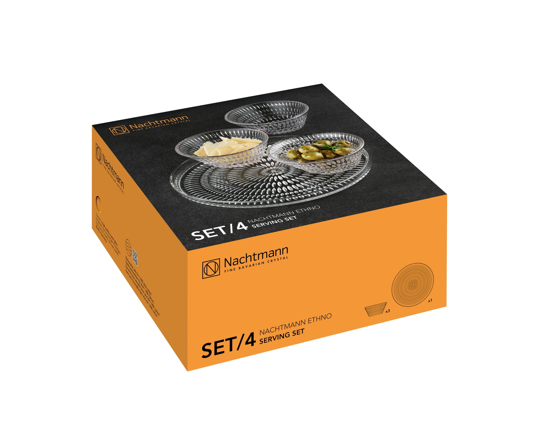 Набор из 4 предметов (тарелка 22 см + 3 салатника 11 см), хрусталь