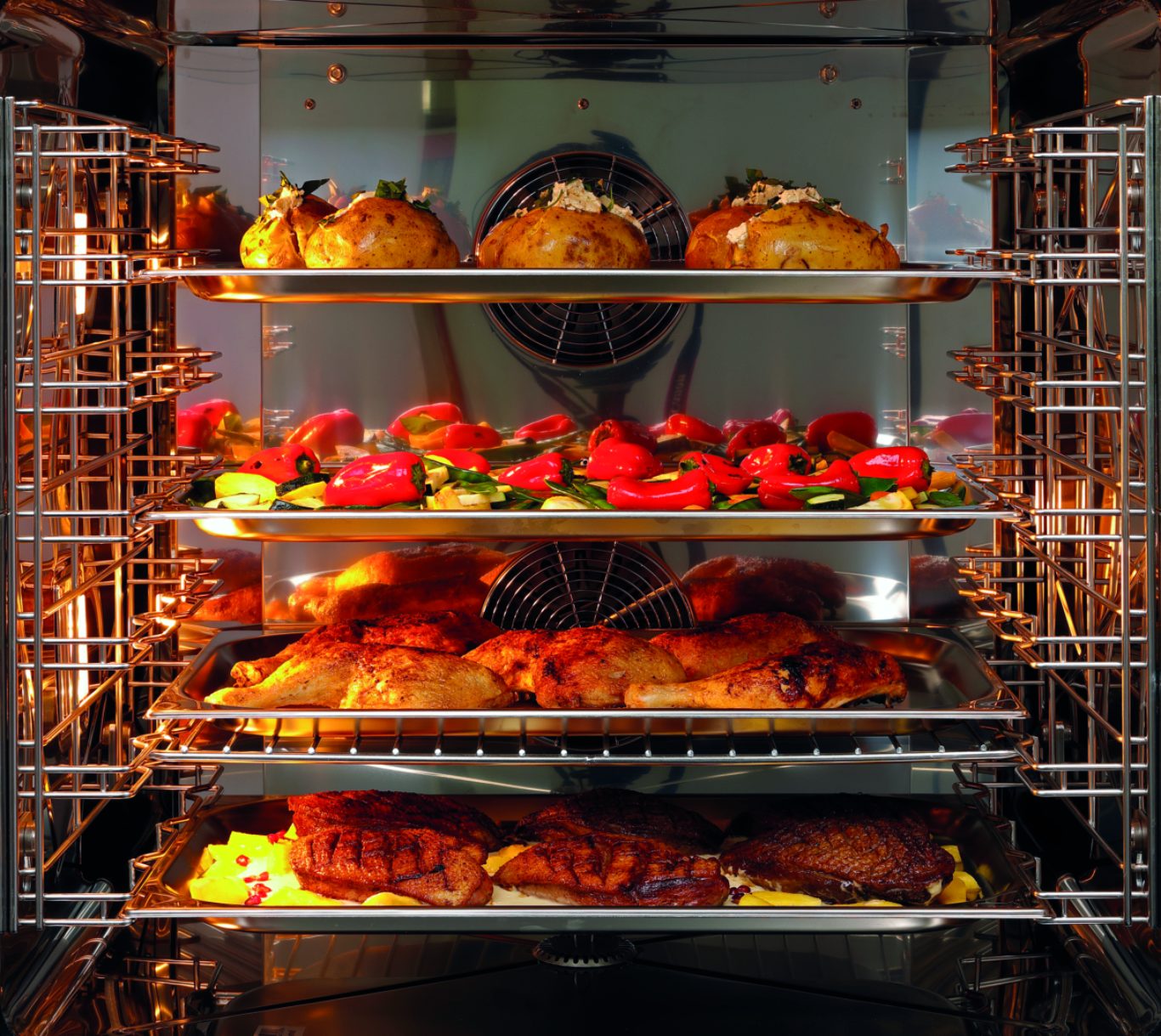 Свойства: Закругленная внутренняя камера ,Направляющие, извлекаемые ,Двойное остекление дверей ,Штепсельная розетка (500 Вт) для подключения вытяжки