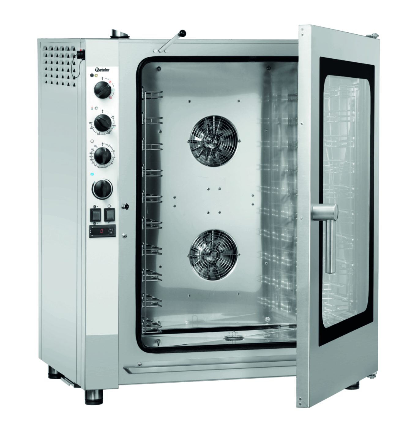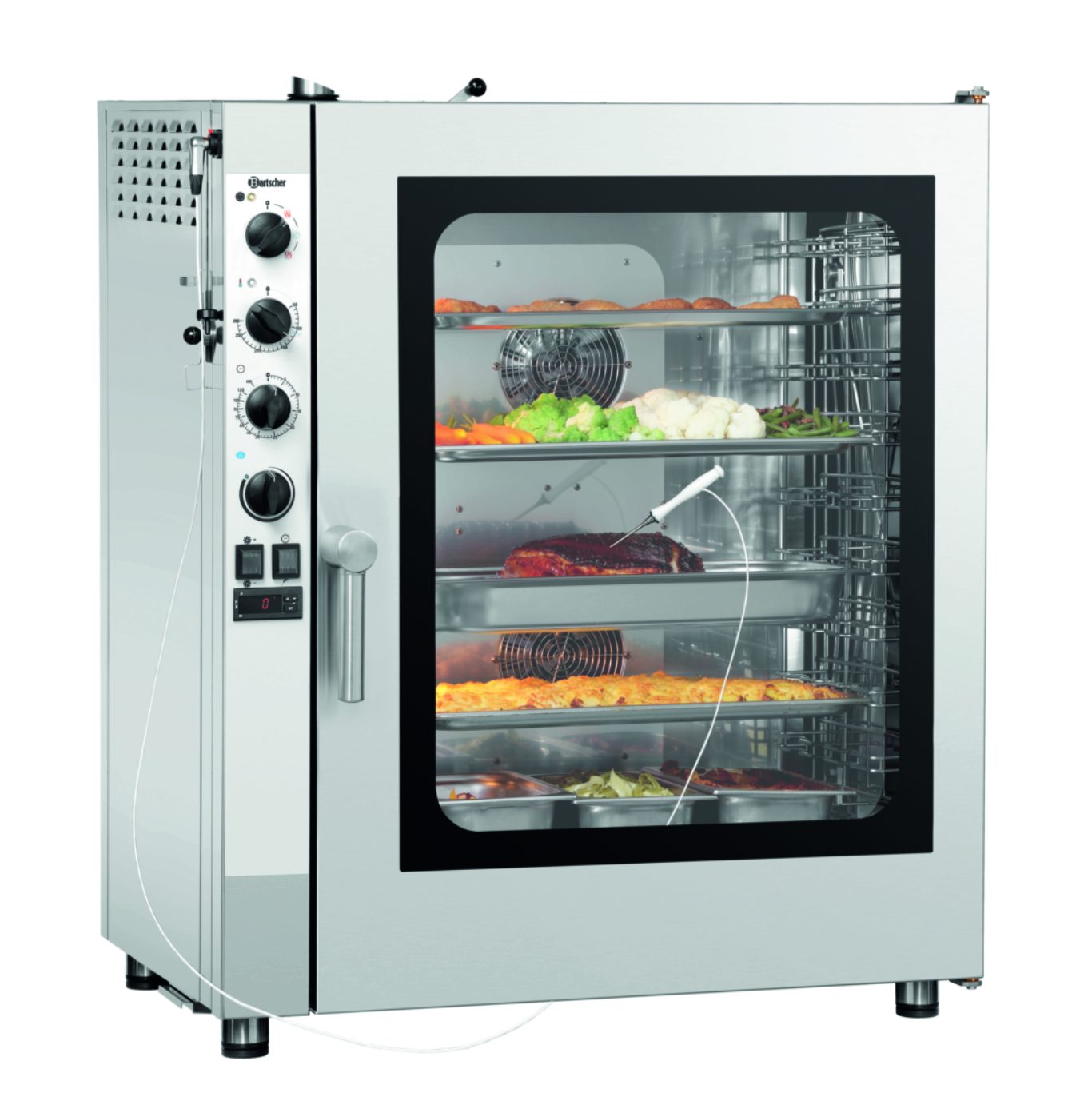 Пароконвектомат Bartscher серии Silversteam с электронным управлением и 10 вставками формата 1/1 GN — идеальный партнер на любой кухне. Ручное управление обеспечивает простой контроль всех процессов приготовления.