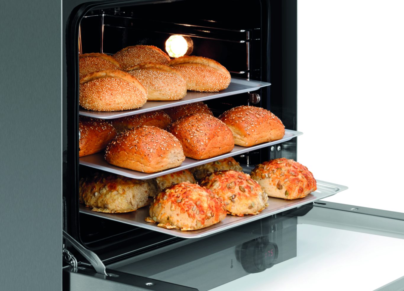 Свойства: Рукоятка с цифровой индикацией температуры и времени ,Возможность поставить на паузу процесс приготовления с помощью регулятора температуры ,Двойное остекление дверей ,Закругленная внутренняя камера ,Направляющие, извлекаемые ,Звуковой сигнал по истечении времени
