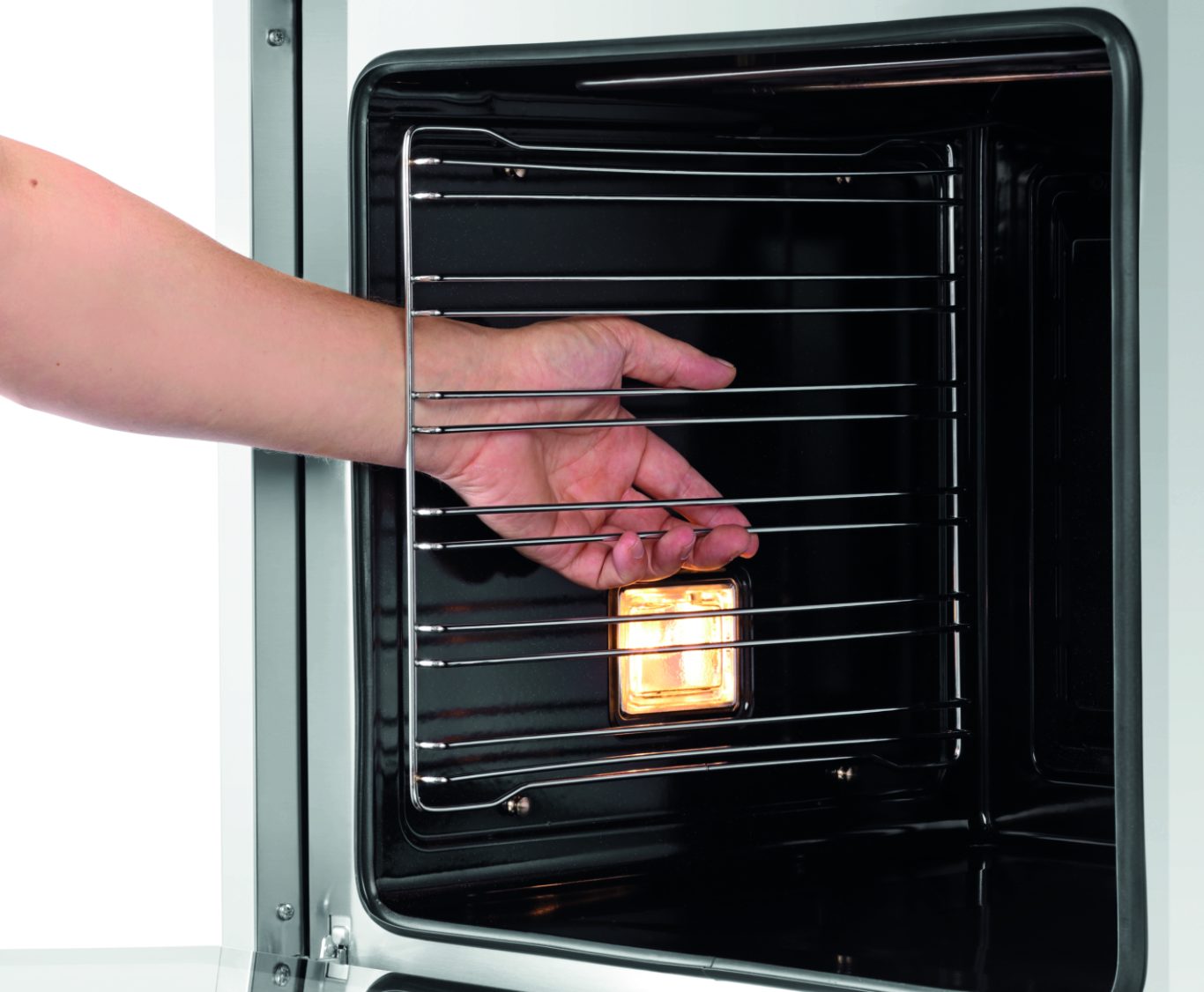 Свойства: Дверца с тройным остеклением ,Закругленная внутренняя камера ,Направляющие, извлекаемые