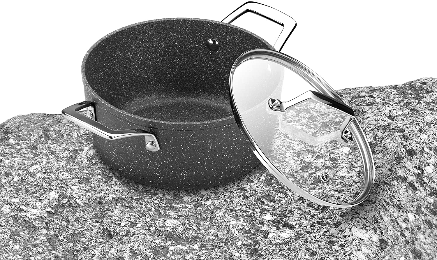Monix представляет свою коллекцию посуды Granite, созданную в результате применения производственных процессов, таких как система MetalTec, которая воздействует на закаленную алюминиевую поверхность маленькими стальными шариками придавая ей прочность и антиприграрность. Это добавляется к использованию трехслойного покрытия Quantanium с частицами титана. Серия Granite с толщиной дна 4 мм, недеформируемая, изготовлена с ручками из нержавеющей стали 18/10 4 мм, что позволяет использовать ее в духовке. Линейка Granite совместима со всеми типами плит, а её полностью индукционное дно позволяет эффективно использовать энергию.