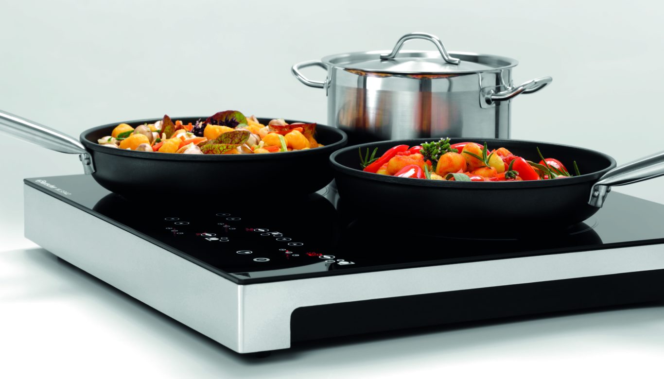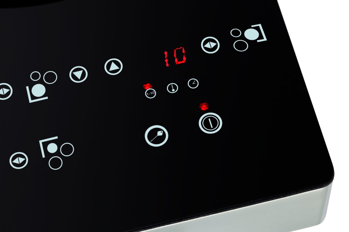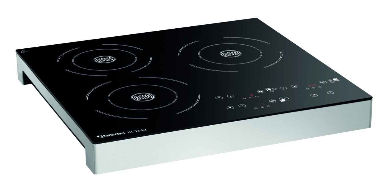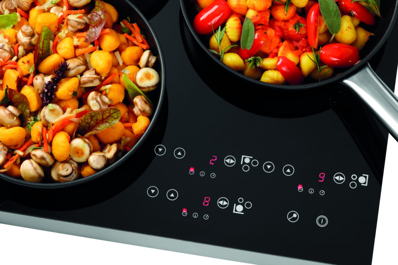 Индукционная плита с 3 конфорками для индивидуального применения. В зависимости от типа приготовления пищи мощность 3400 Вт распределяется на 3 или 2 конфорки.