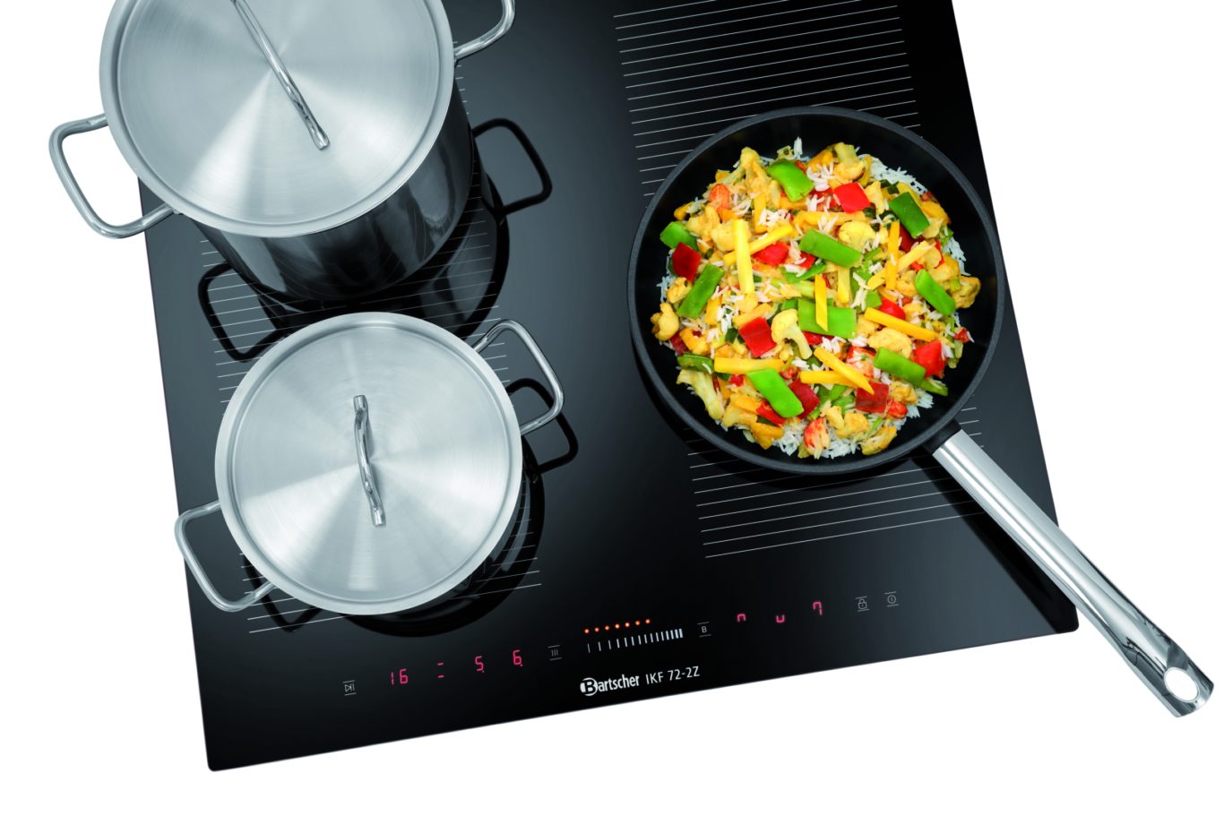 Большей универсальности не бывает — мощность 7,2 кВт можно по выбору распределить на 4 конфорки или на 2 индукционные зоны нагрева. Таким образом, всю поверхность индукционной панели можно эффективно использовать под посуду различных форм и размеров.