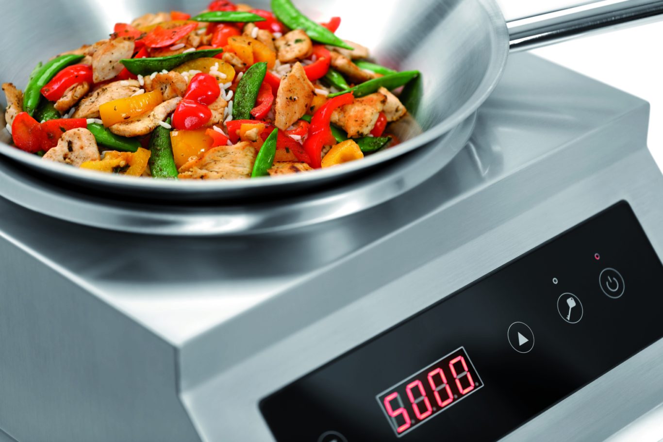Портативный и мощный - индукционный вок мощностью 5 кВт управляется простым регулированием мощности с сенсорной панели управления.