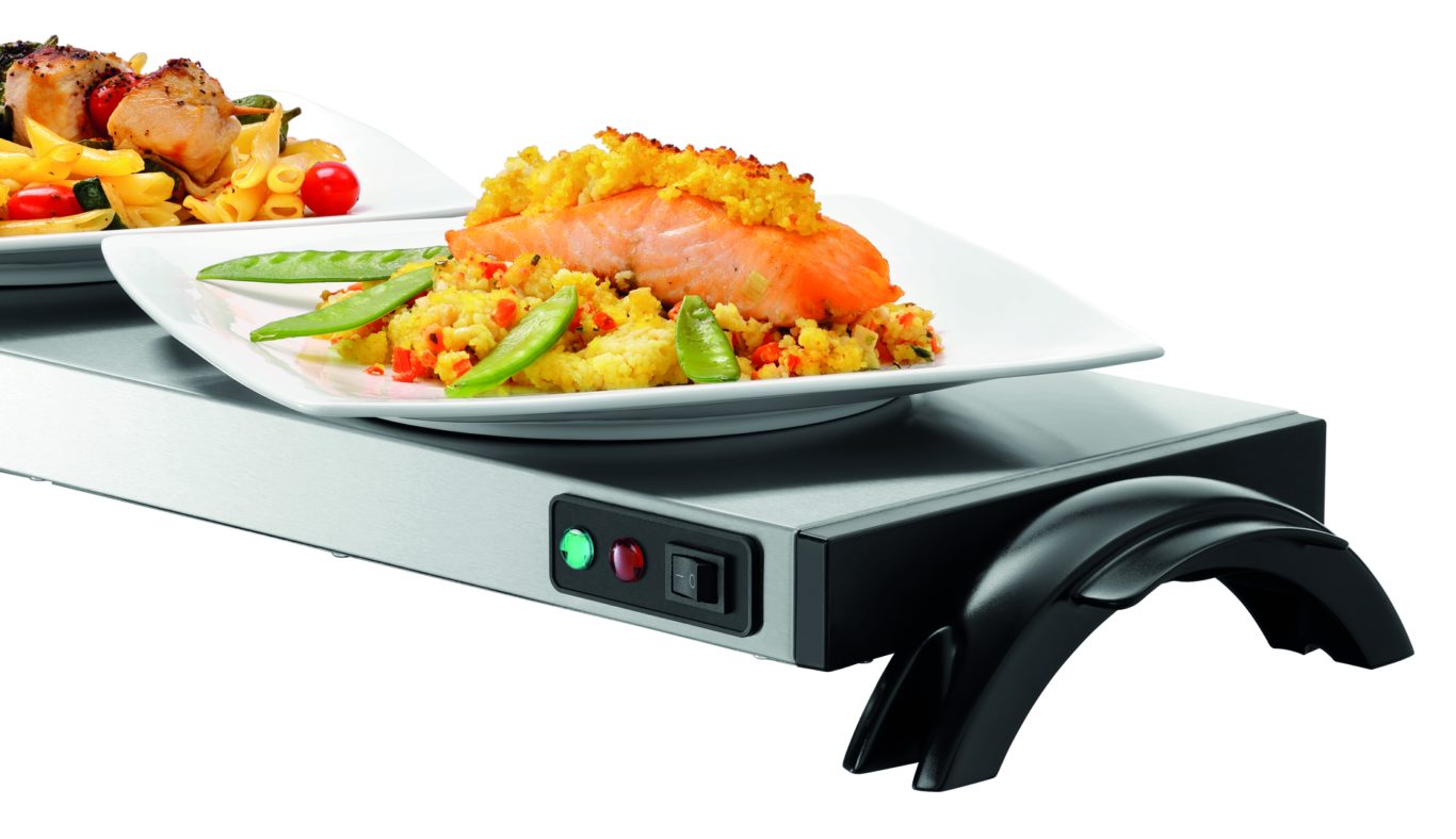 Компактная панель поддержания блюд теплыми с двойным применением. Благодаря съемному комплекту провода и тепловому аккумулятору панель можно использовать в качестве настольной плиты для подогрева блюд.