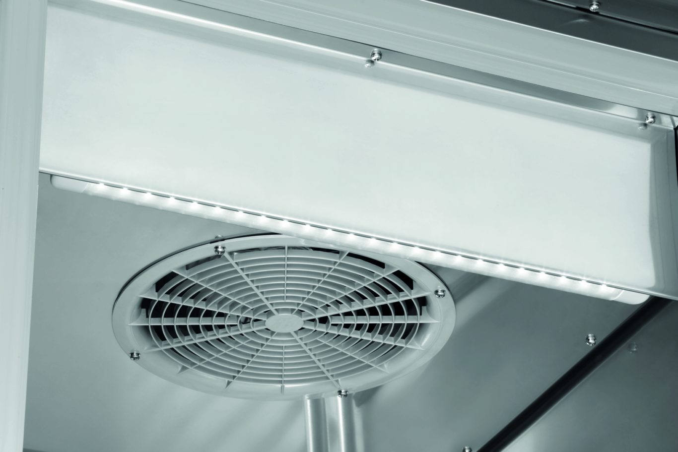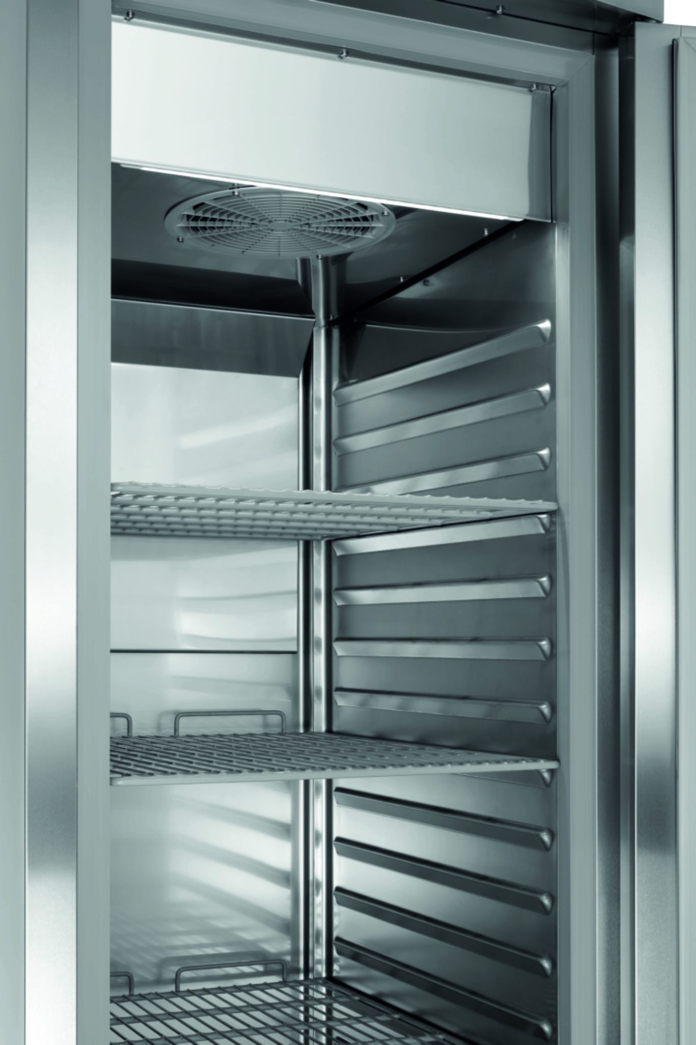 Просторный и умный — стильный шкаф глубокого охлаждения из нержавеющей стали обеспечивает максимальную гибкость с вместимостью 700 л в формате 2/1 GN. Звуковой сигнал предупреждает о прерывании холодильной цепи, если дверца слишком долго открыта.