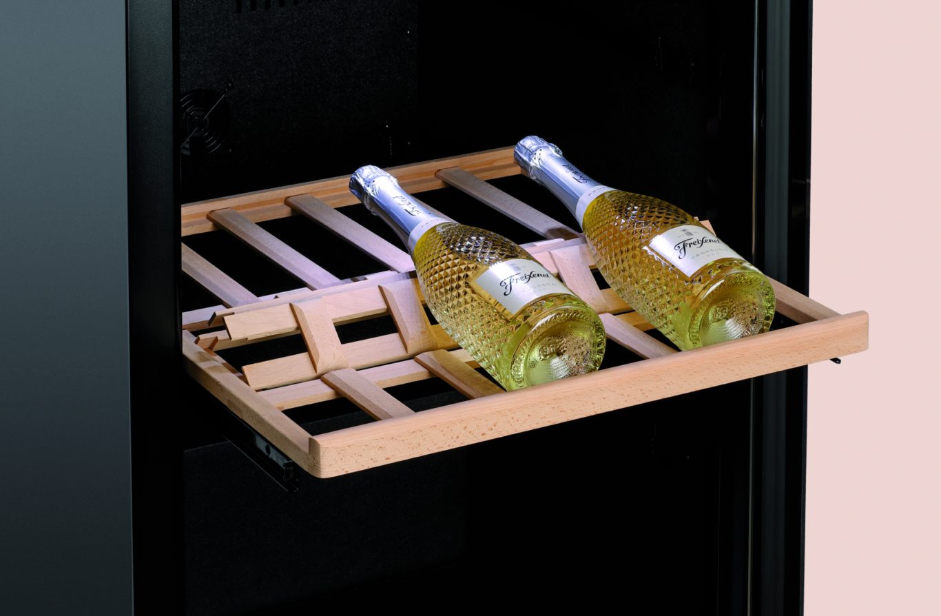 Для идеальной демонстрации вина: презентер для бутылок, специально разработанный для винного холодильника 2Z 180FL, вмещает до 6 бутылок, которые могут быть выставлены для демонстрации под углом 25° или горизонтально благодаря механизму складывания.