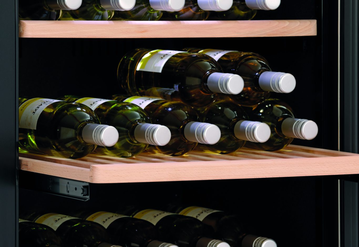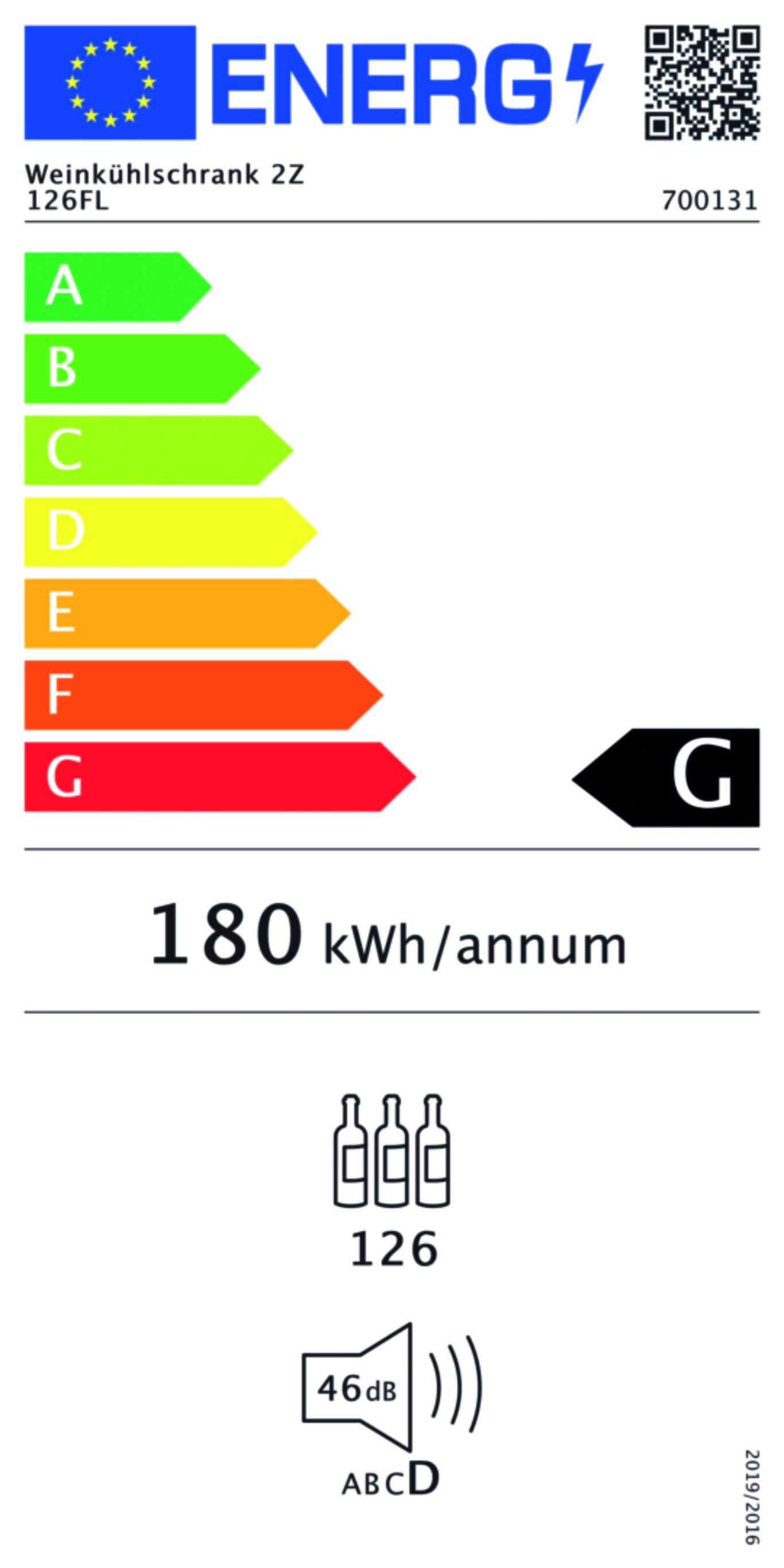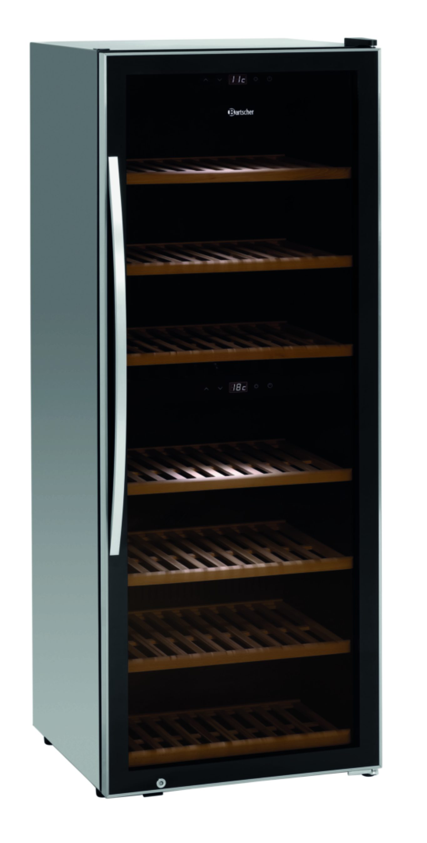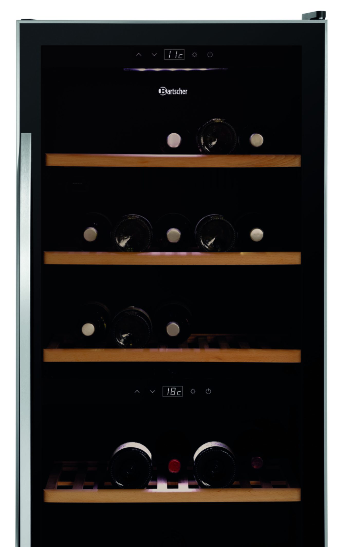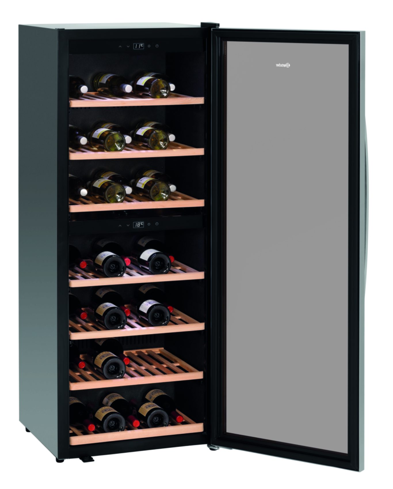 Вместимость: 126 бутылок (вверху: 54 бутылки, внизу: 72 бутылки)