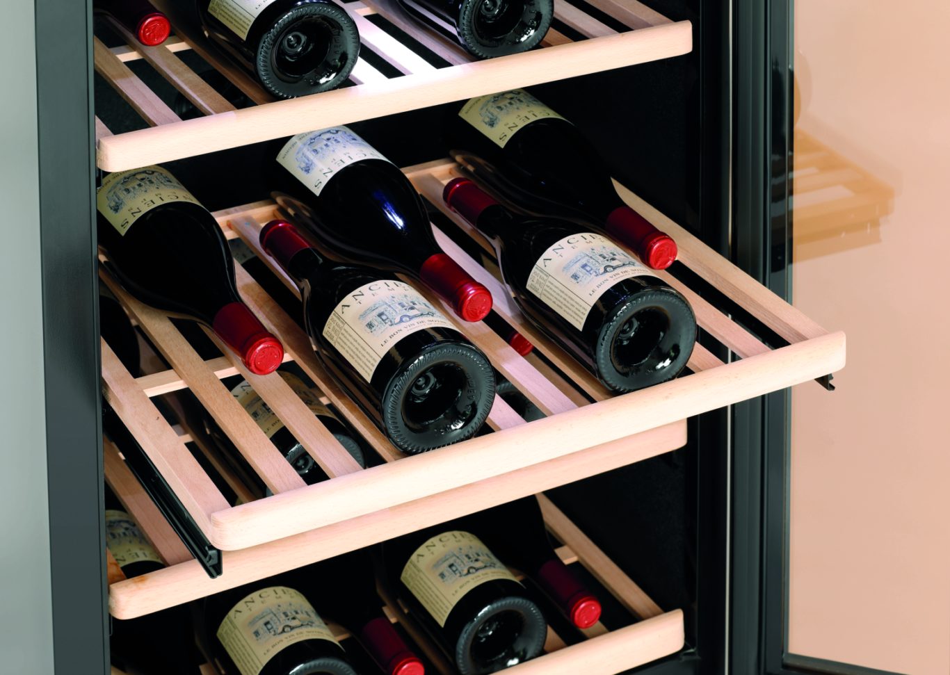 Высококачественный винный холодильник со стильным элегантным дизайном и тихо работающим компрессором предназначен для применения в баре или ресторане.
