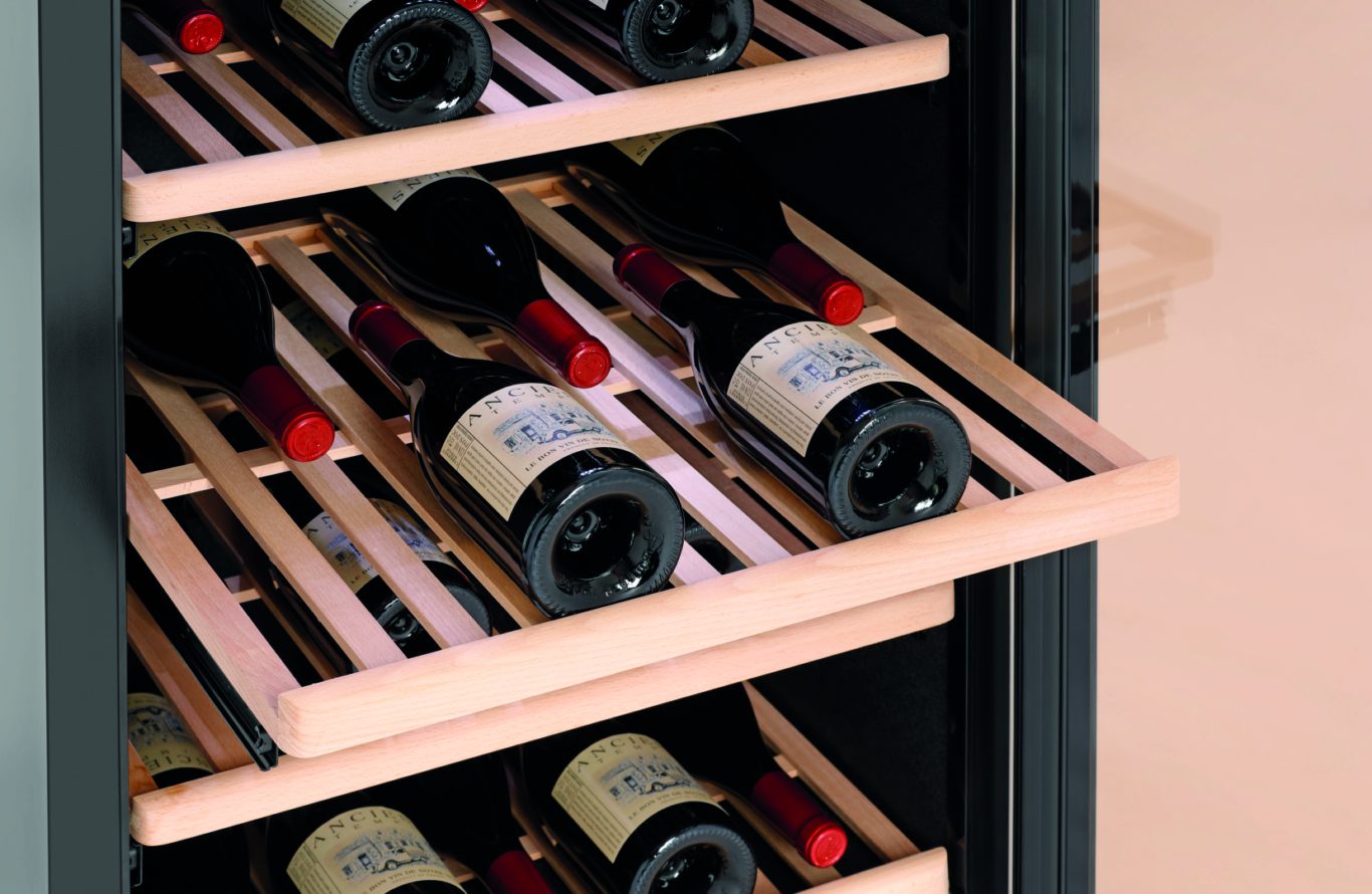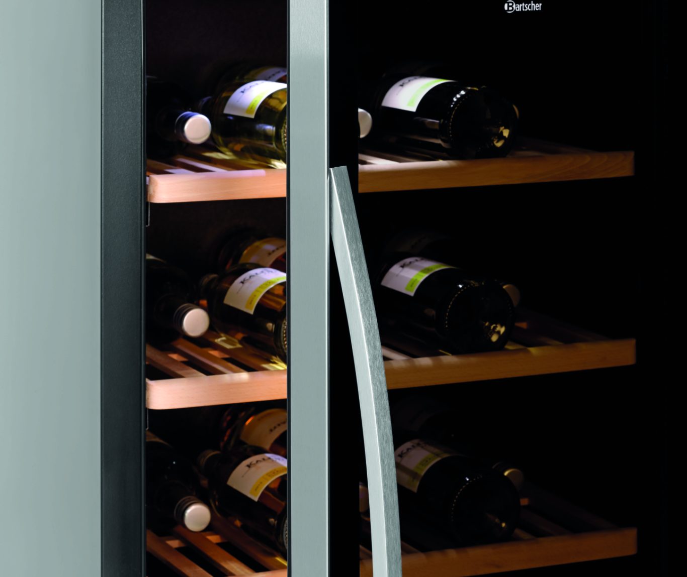 Высококачественный винный холодильник со стильным элегантным дизайном и тихо работающим компрессором предназначен для применения в баре или ресторане.