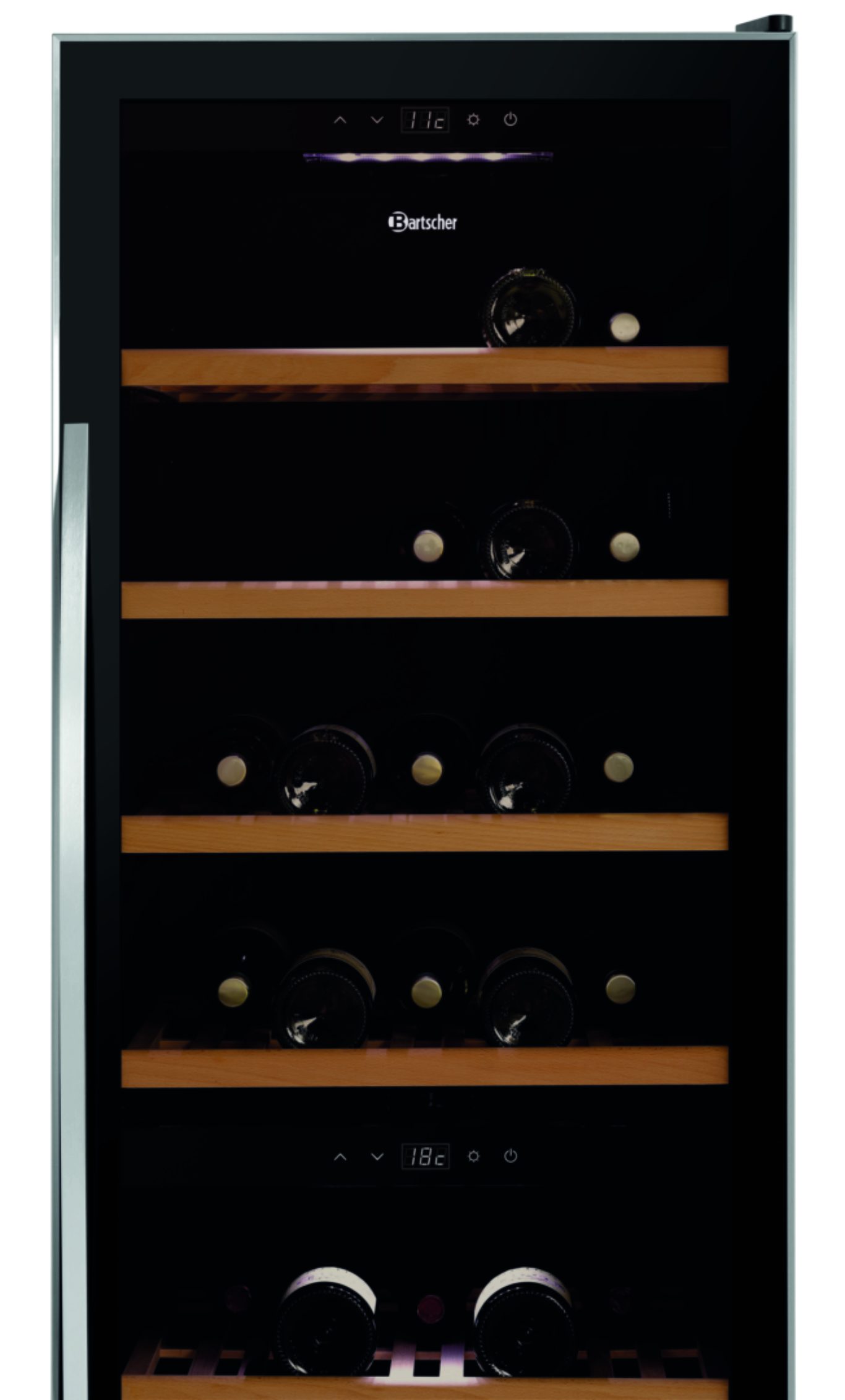 Вместимость: 180 бутылок (вверху: 80 бутылок, внизу: 100 бутылок)