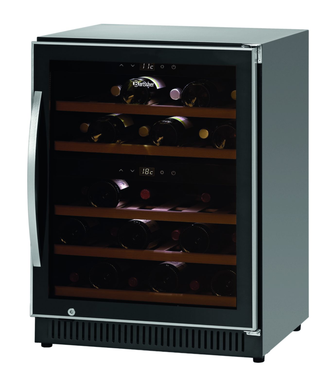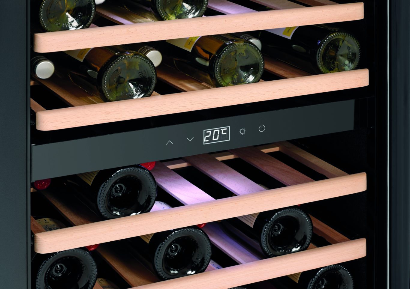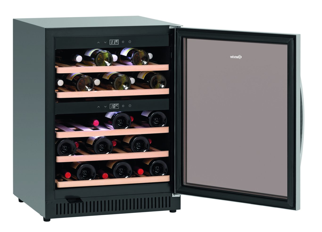 Вместимость: 40 бутылок (вверху: 14 бутылок, внизу: 26 бутылок)