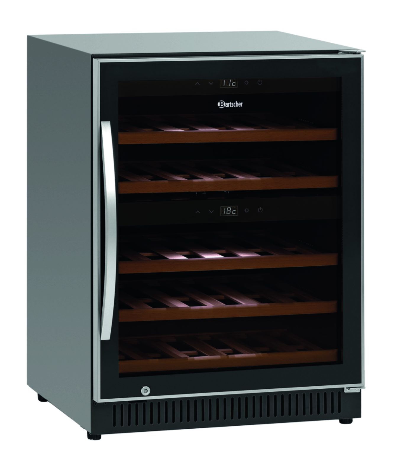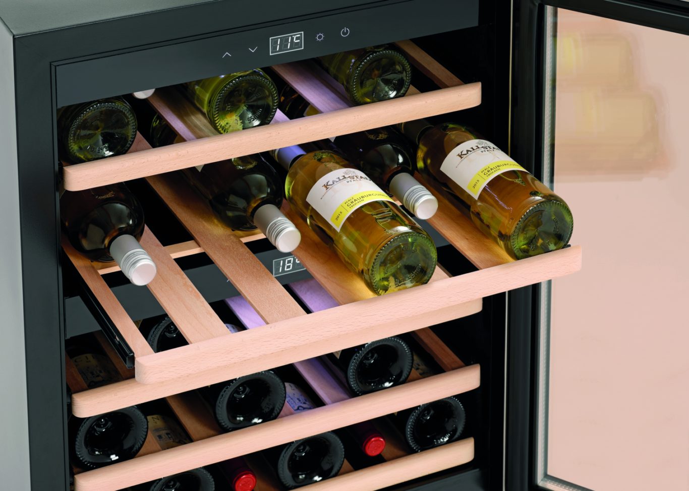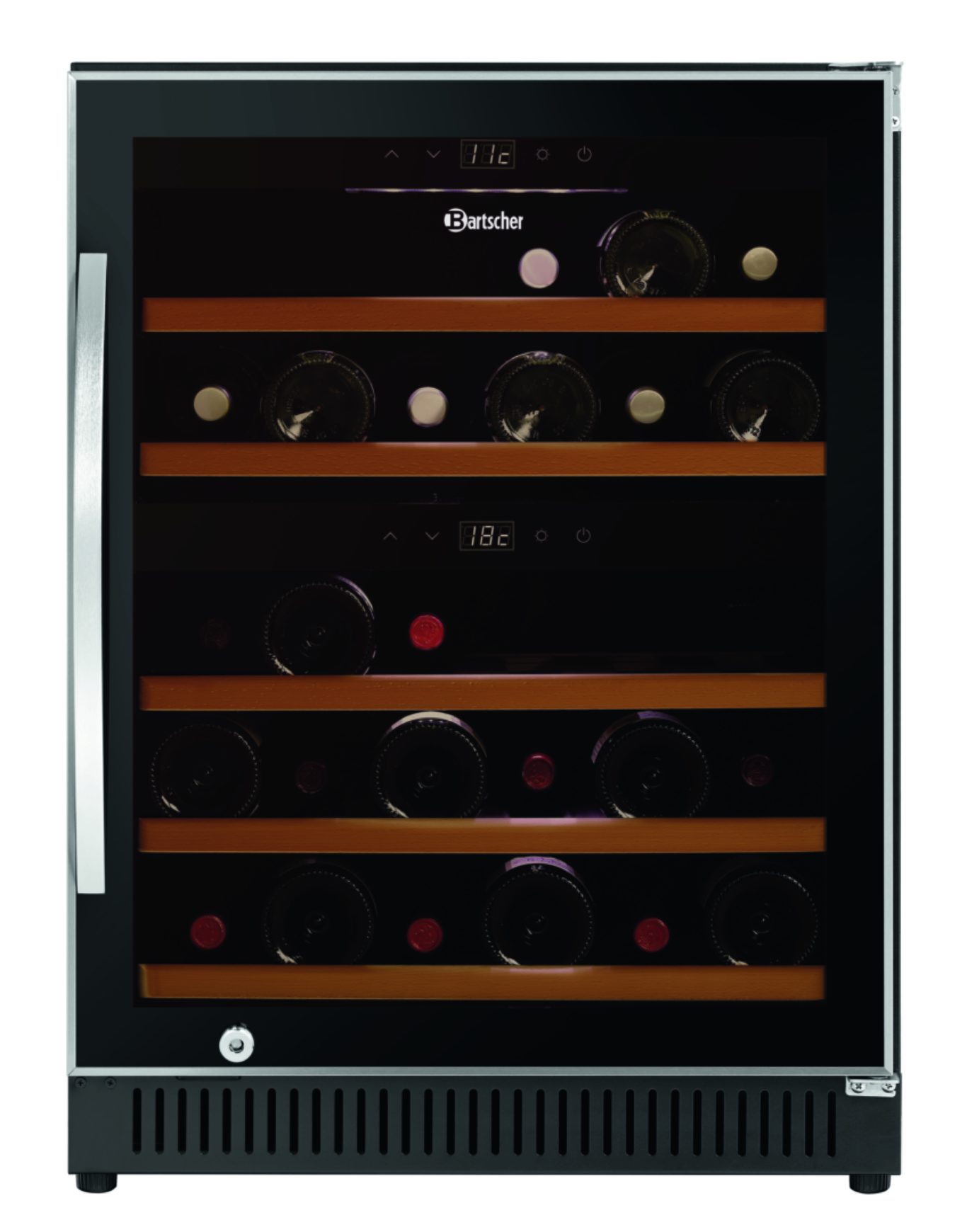 Вместимость: 40 бутылок (вверху: 14 бутылок, внизу: 26 бутылок)