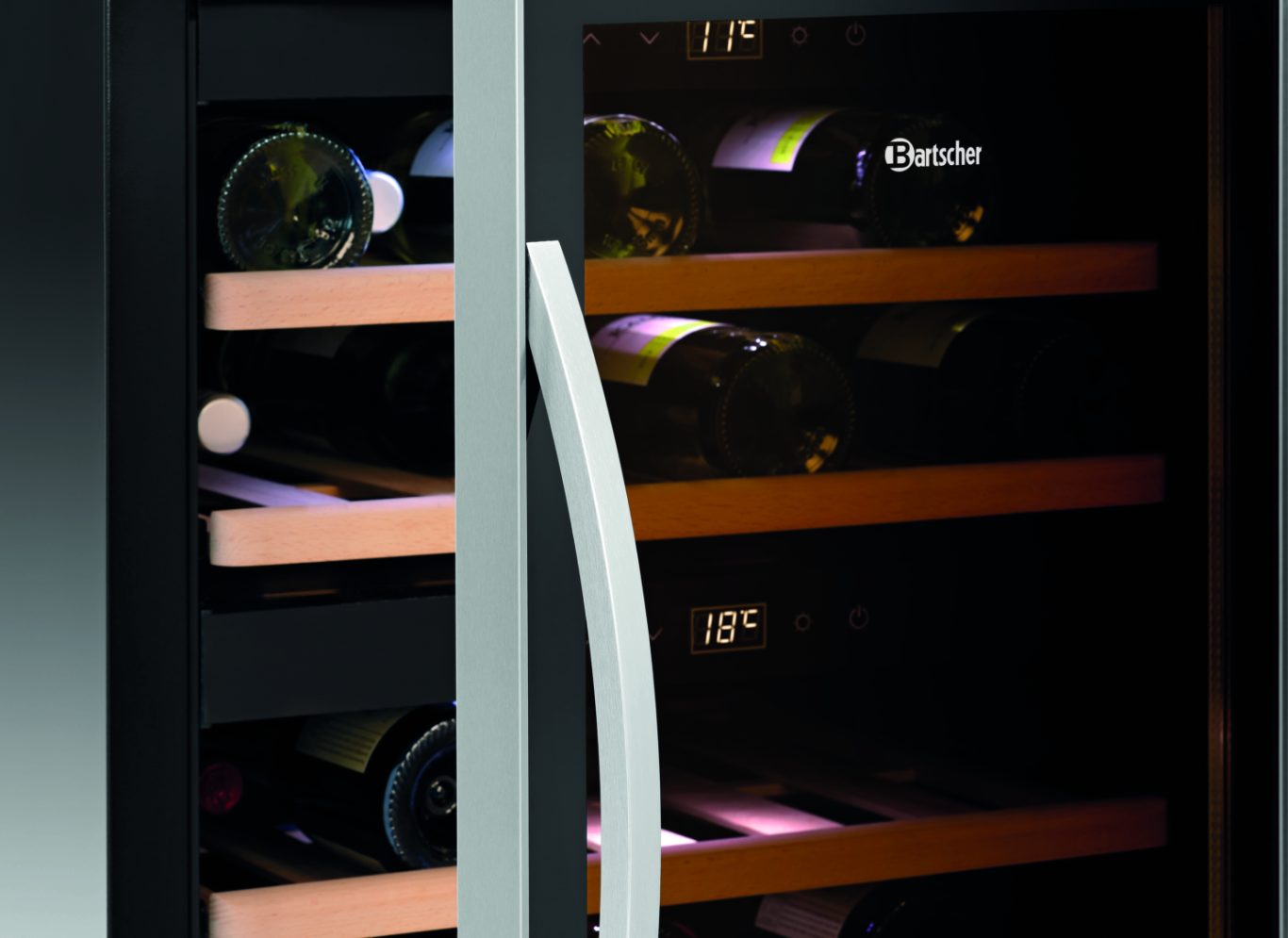 Высококачественный винный холодильник со стильным элегантным дизайном и тихо работающим компрессором предназначен для применения в баре или ресторане.