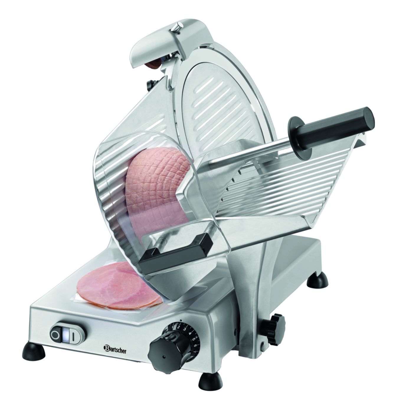 Исполнение улучшенного слайсера с ножом диаметром 300 мм впечатляет своими техническими характеристиками. Высокопроизводительный слайсер снабжён прижимным механизмом, заточным устройством, направляющей наклонной кареткой, а также двойной защитой ножа и магнитным выключателем для обеспечения безопасности.