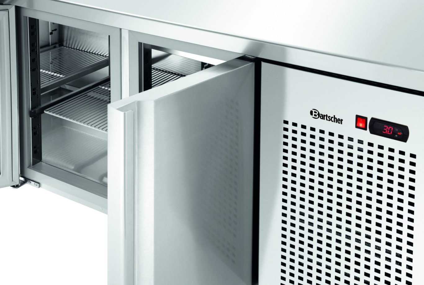 Трехдверный охлаждающий стол с высококачественной рабочей поверхностью из нержавеющей стали и большой зоной с циркулирующим охлаждением — постоянная и равномерная температура охлаждения внутри.