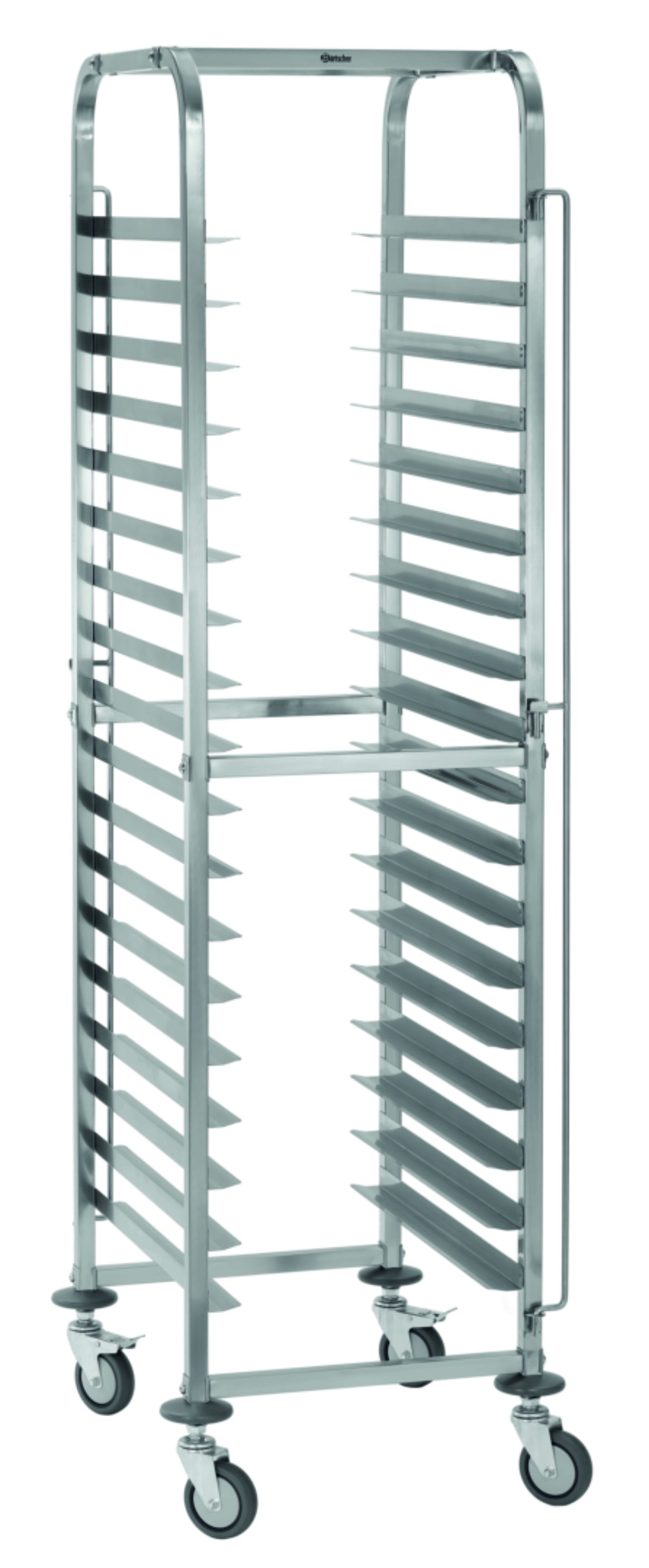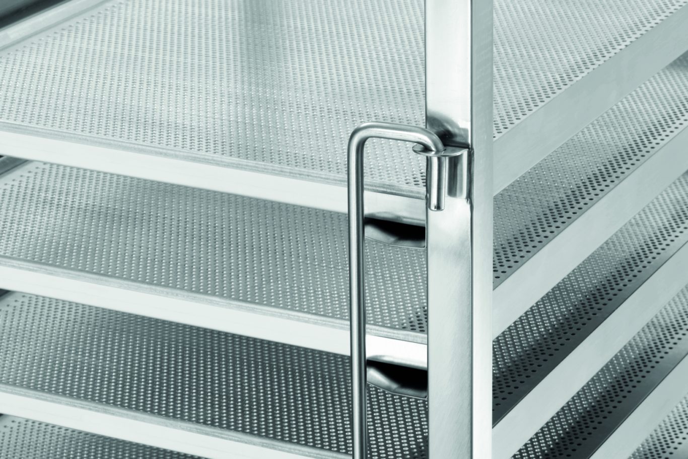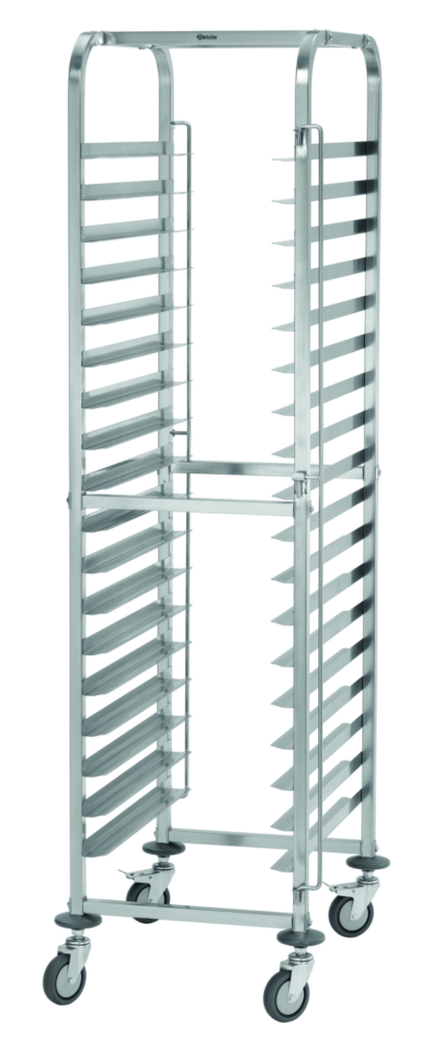 Тележка для уборки для пекарен и пищеблоков рассчитана на 18 листов по стандарту для пекарен размером 600 х 400 мм. Благодаря двустороннему креплению емкостей обеспечивается быстрая и надежная уборка.