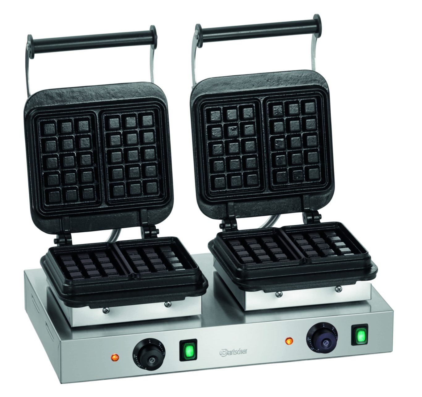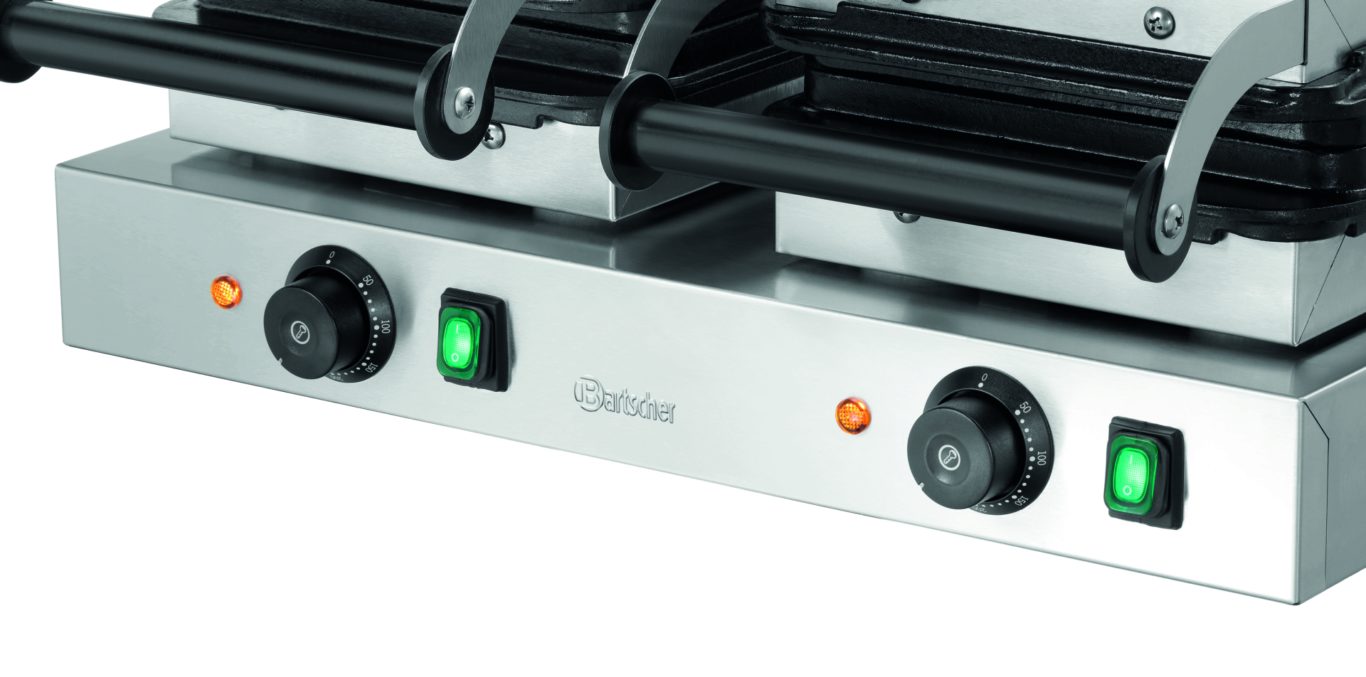 Вафельница с 2 блоками выпекания в форме брюссельских вафель впечатляет не только высокой теплопроводностью чугунных пластин для выпекания, надежным исполнением и производительностью. Два отдельных выключателя также обеспечивают простоту применения согласно потребностям.