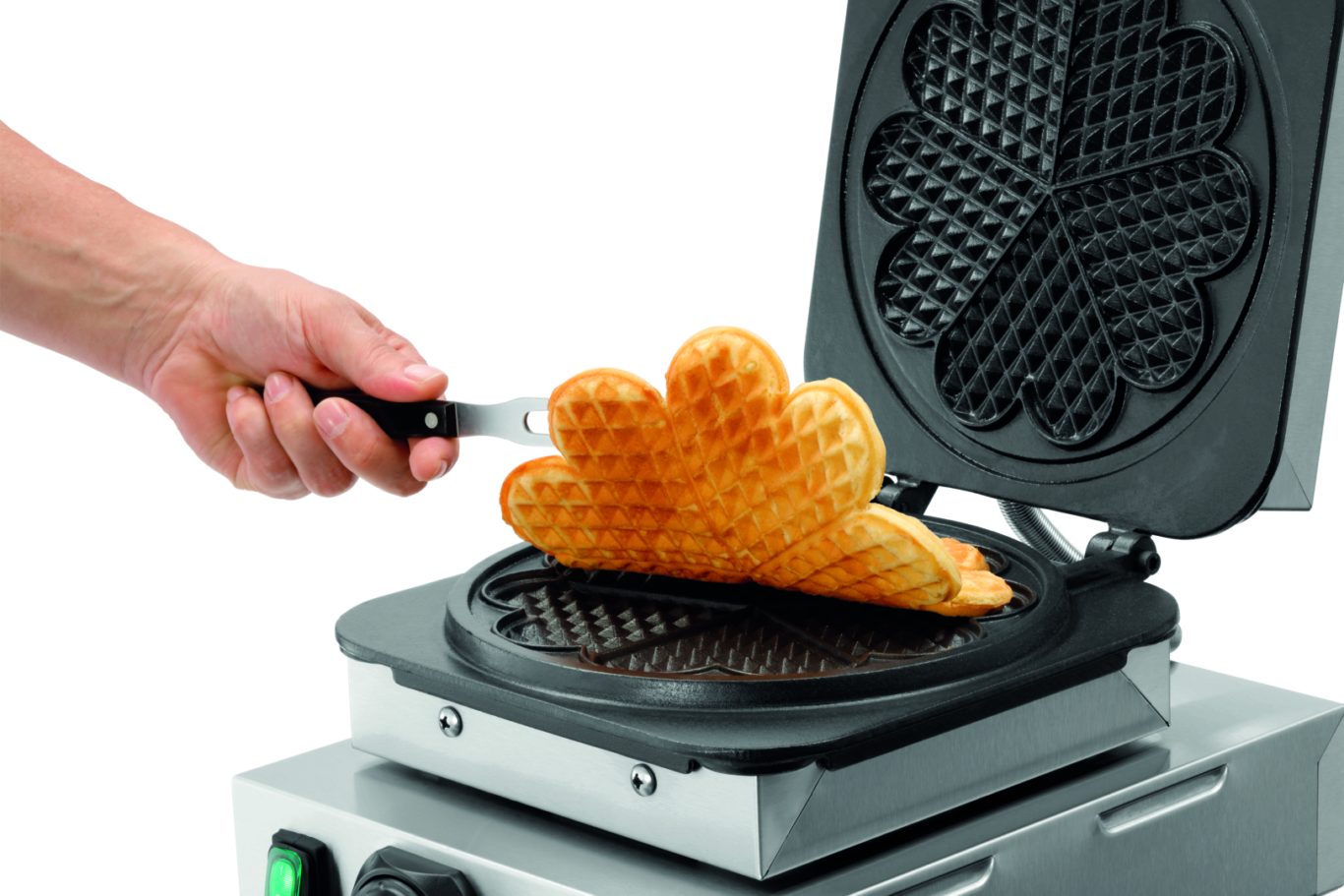 Лучшие условия для приготовления идеальных вафель: прочная конструкция, высокая производительность, простое и интуитивно понятное переключение с цифровым дисплеем, таймером и звуковым сигналом. Кроме того, чугунные пластины для выпекания в форме сердца обладают высокой теплопроводностью.