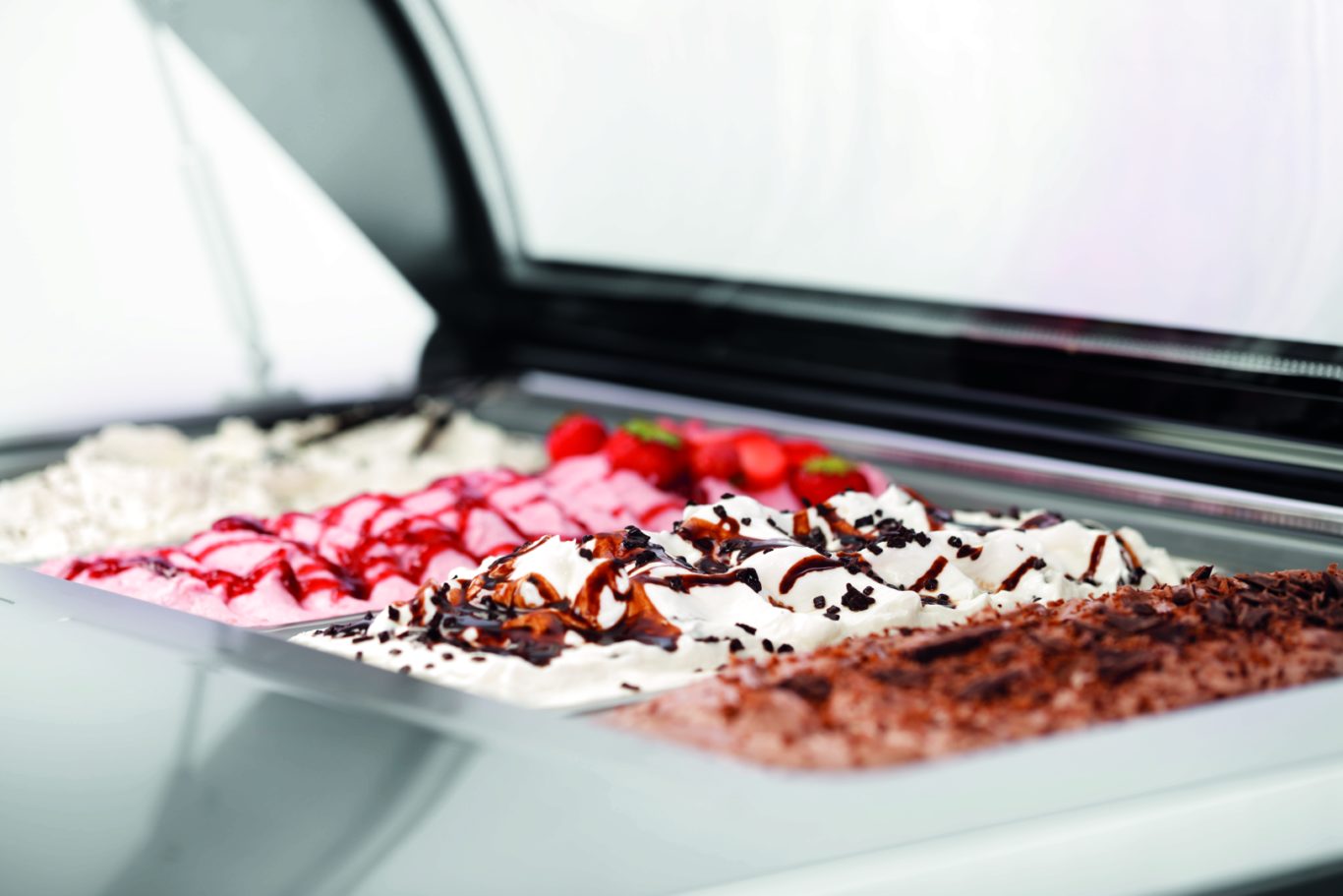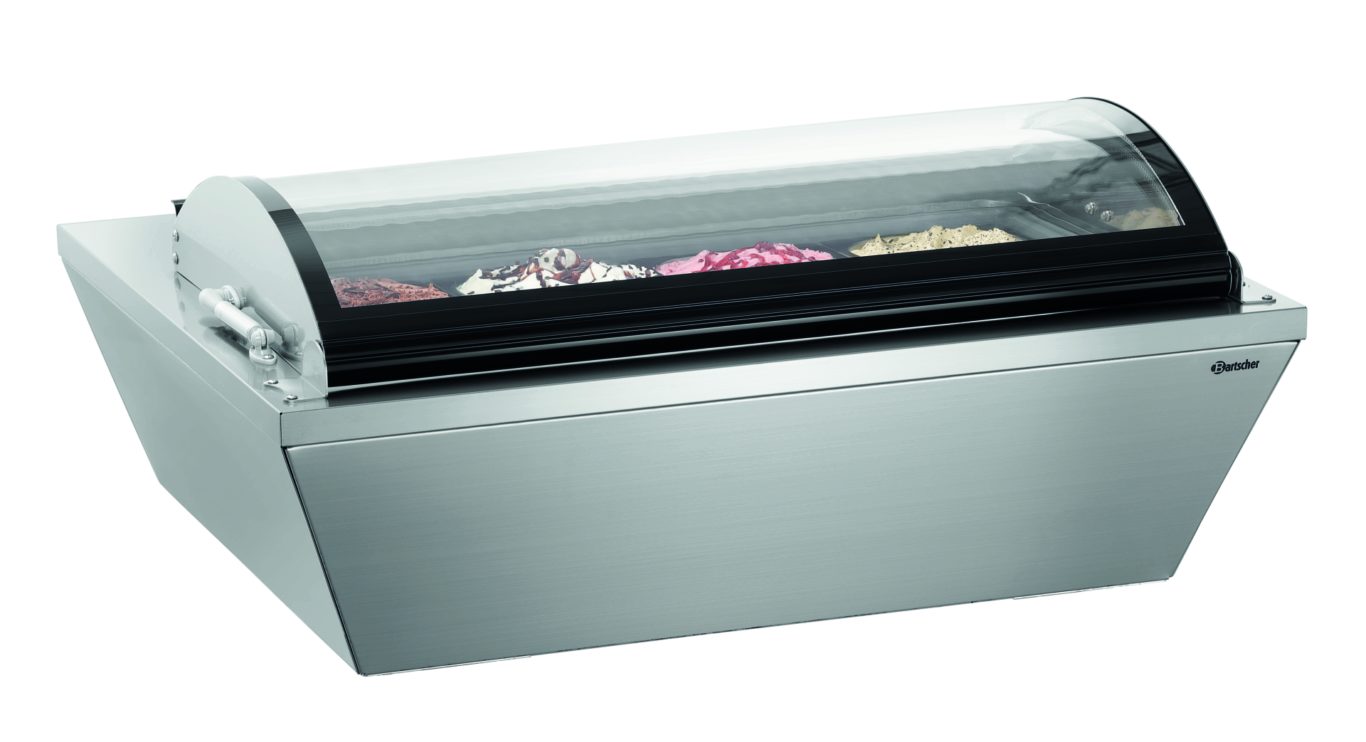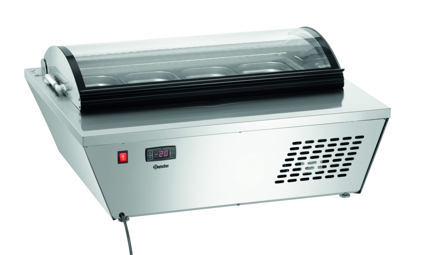 Для вашего фирменного мороженого. Витрина с четырьмя съемными контейнерами объемом по 6,5 литров представляет собой компактное, удобное решение для приготовления десертов для любых кухонь общественного питания.