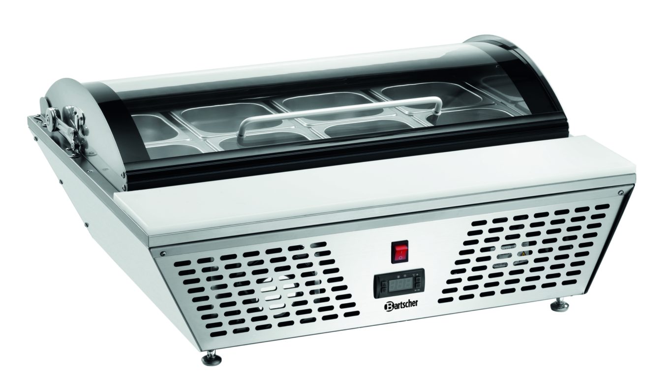 В комплекте: 8 емкостей GN 1/6 GN, 100 мм глубина, CNS 18/10 ,3 стойки: длина 360 мм, ширина 30 мм